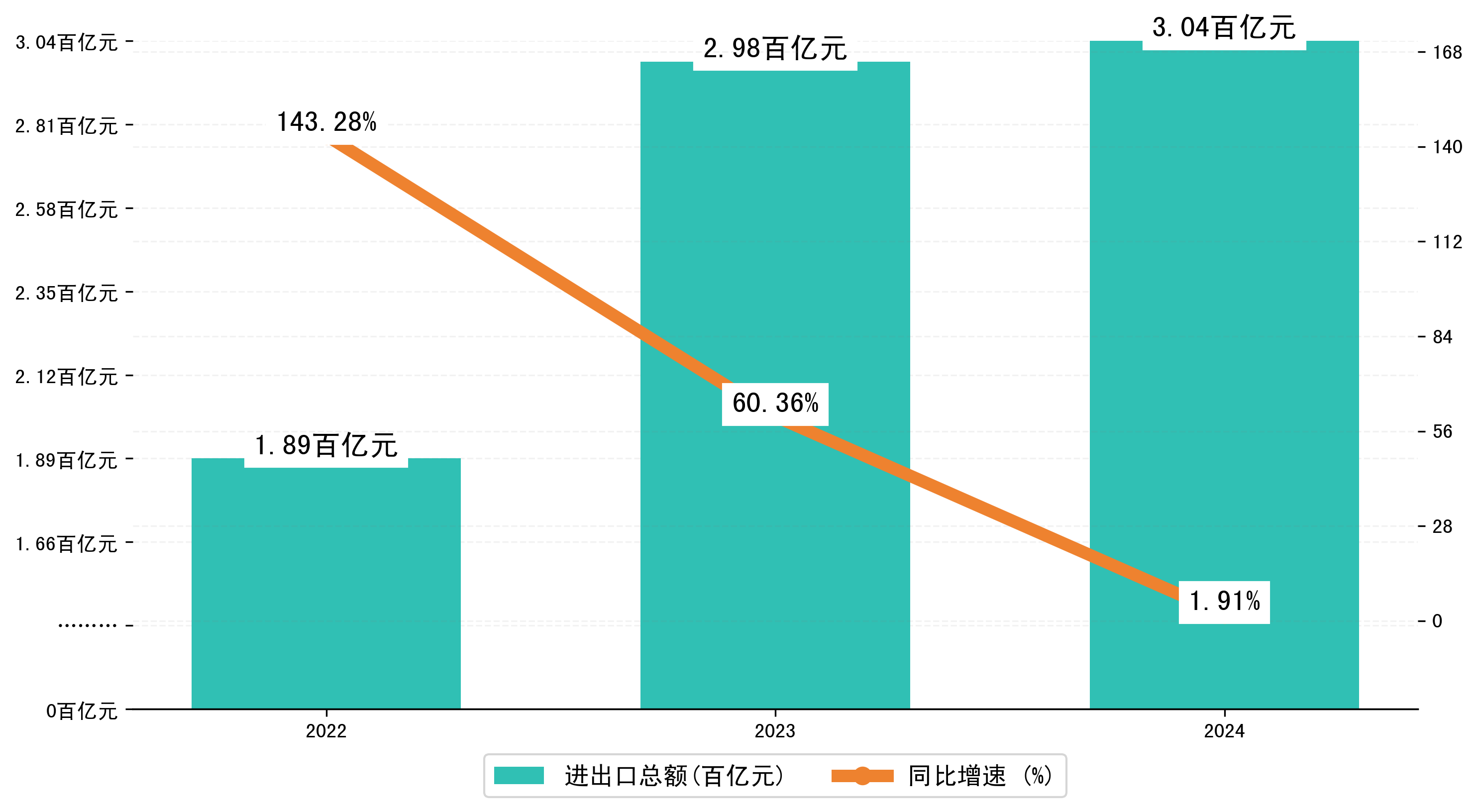 以人民币计,2024年1-10月安庆市进出口总额为303,5113.6483万元,相比上年同期增加了5,7027.2265万元,同比增加了2.80%。