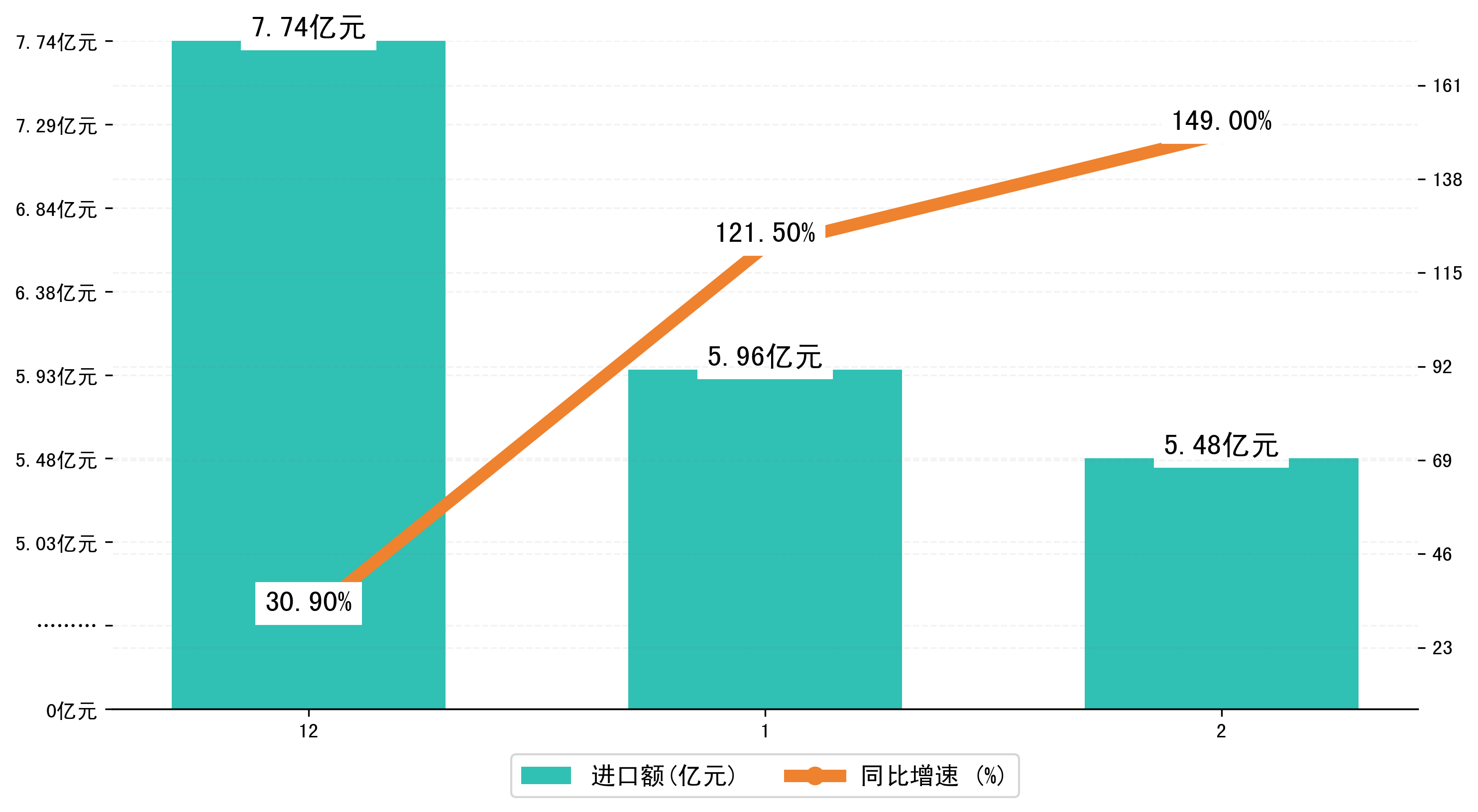 以人民币计,2023年1-2月安庆市进口额为11,4358.1387万元,相比上年同期增加了6,8335.6977万元,同比增加了149.00%。