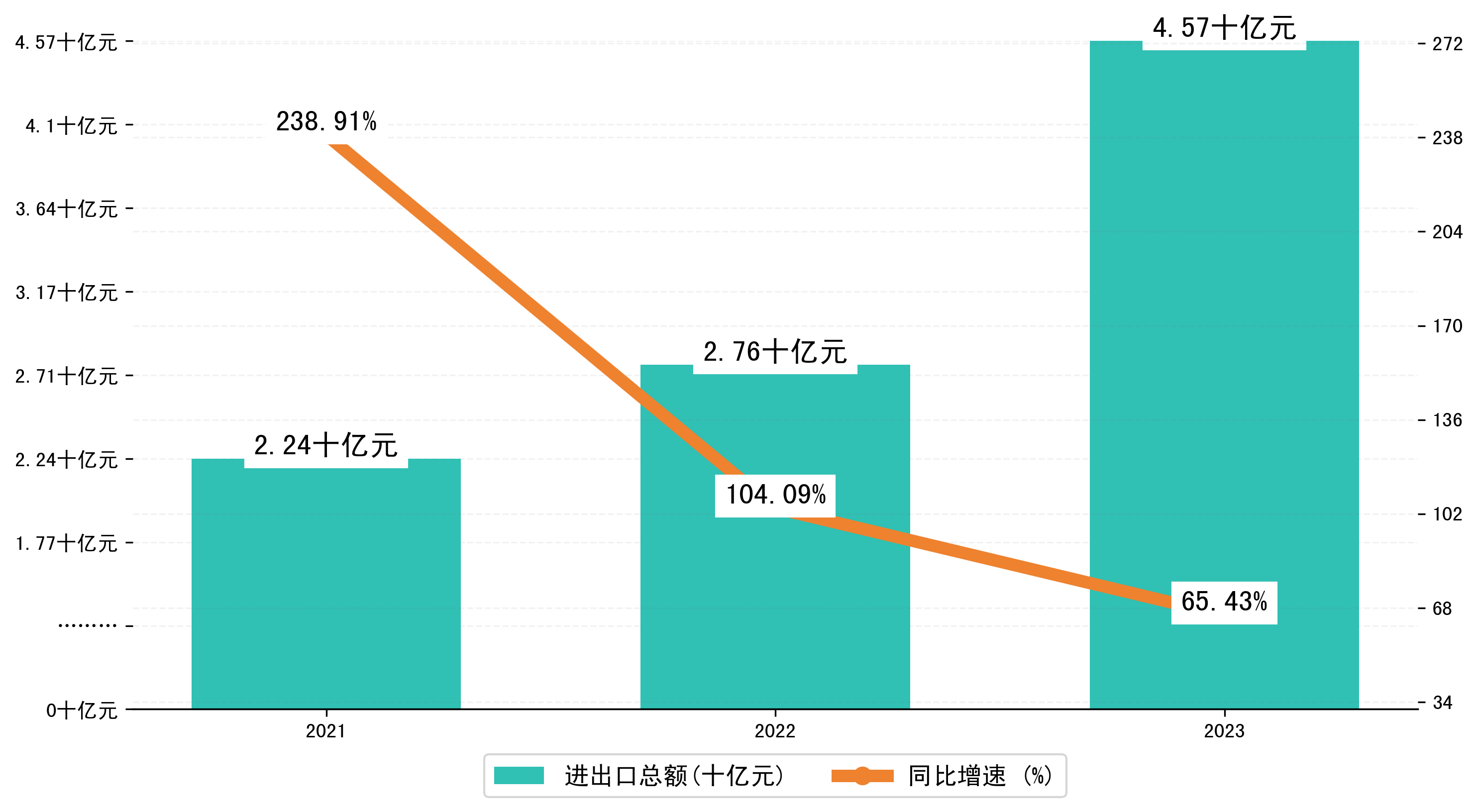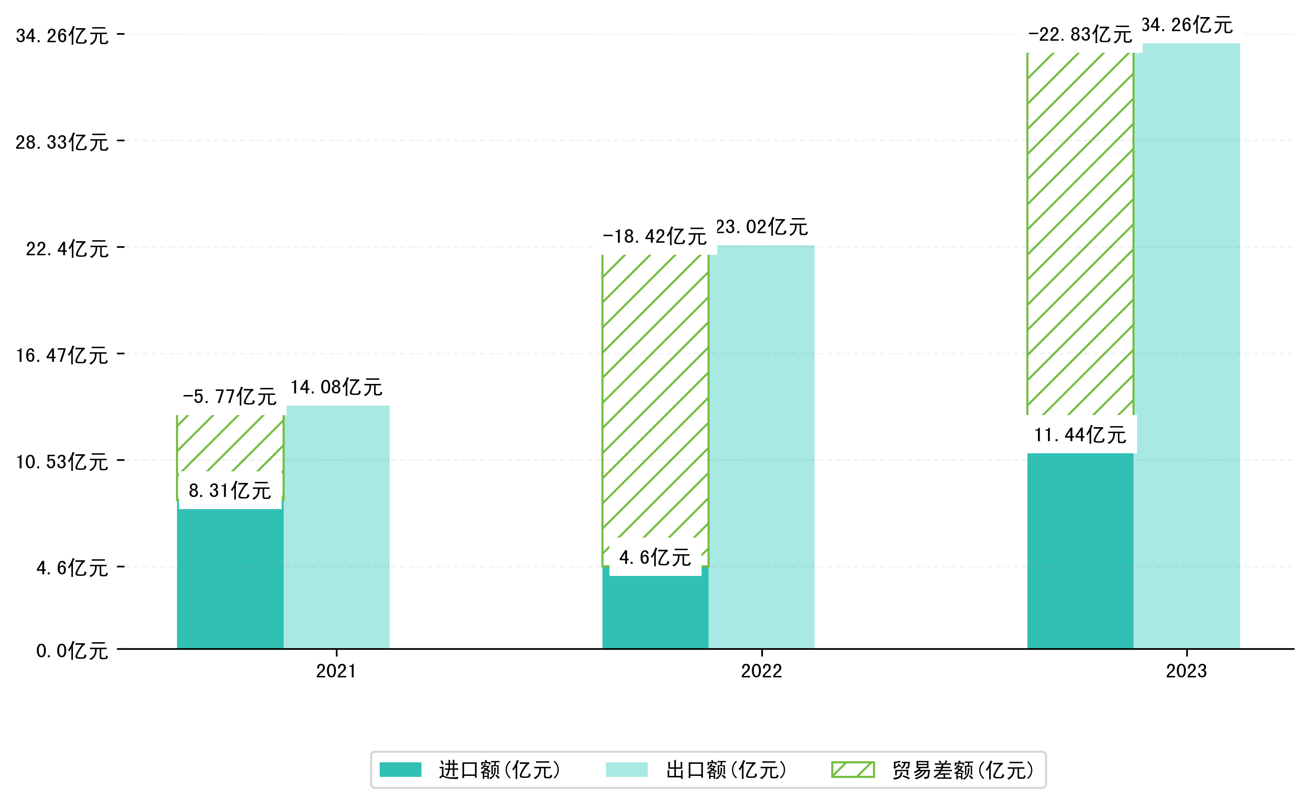 以人民币计,2023年1-2月安庆市贸易差额为22,8251,6786万元(贸易顺差),相比上年同期增加了4,4068,9696万元,同比增加23.93%。