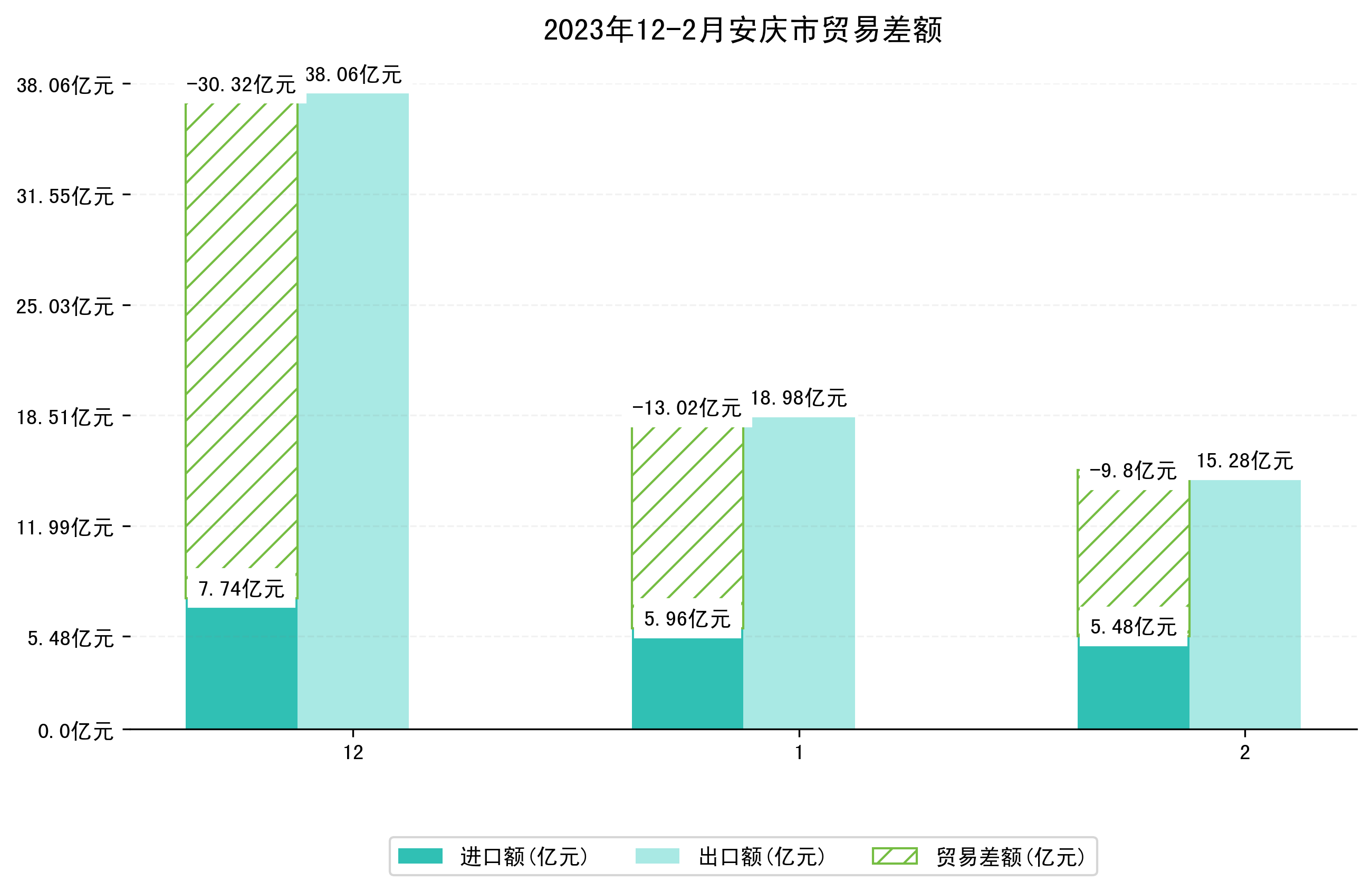 2023年2月安庆市进出口总额及进出口差额统计分析