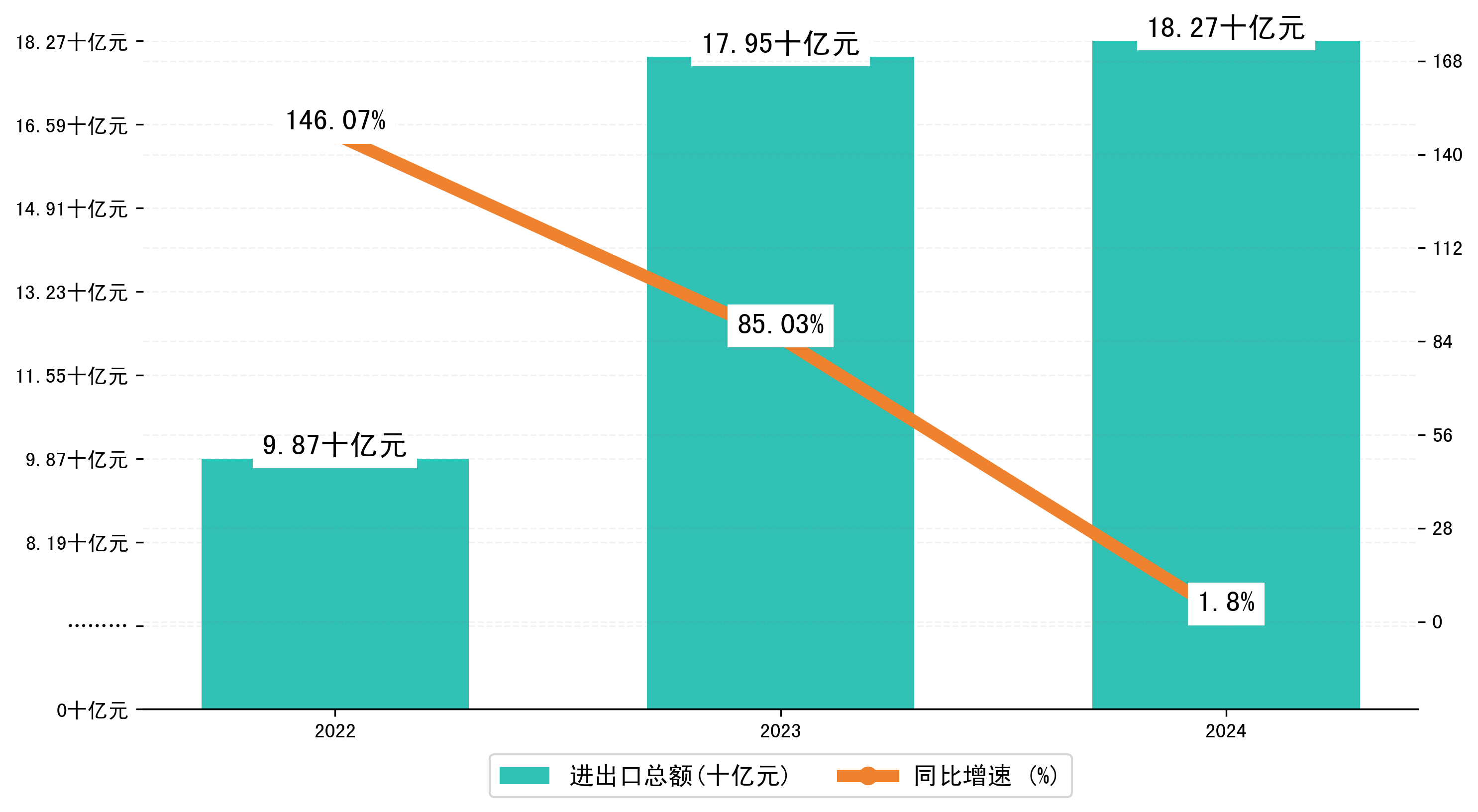 以美元计,2024年1-6月安庆市进出口总额为25,7282.1222万美元,相比上年同期增加了2400.0137万美元,同比增加1.40%。