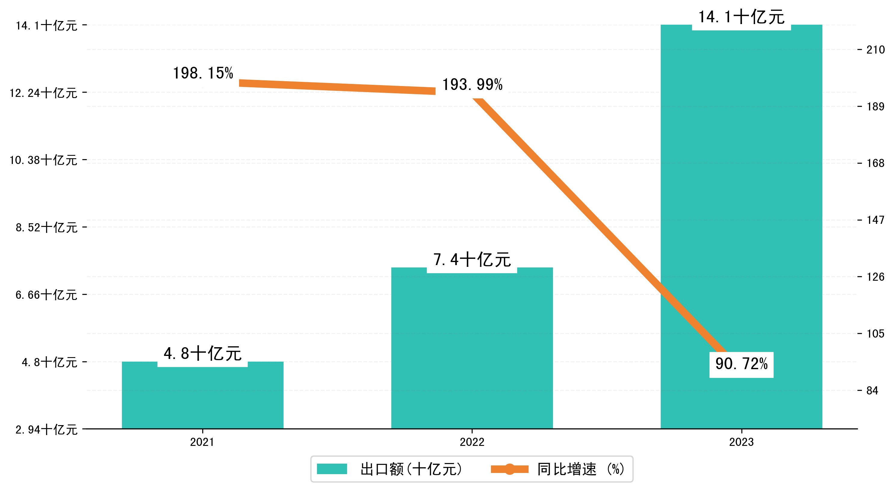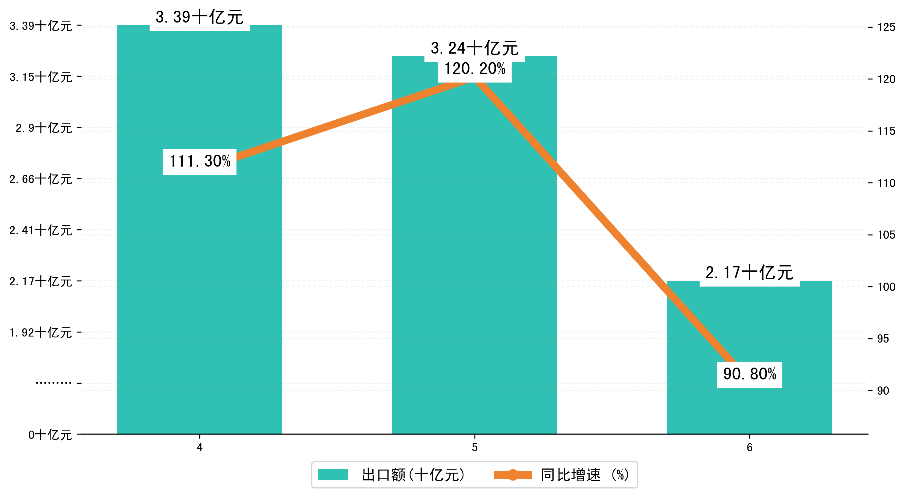 以人民币计,2023年1-6月安庆市出口额为141,0479.1112万元,相比上年同期增加了67,0933.5734万元,同比增加了90.80%。