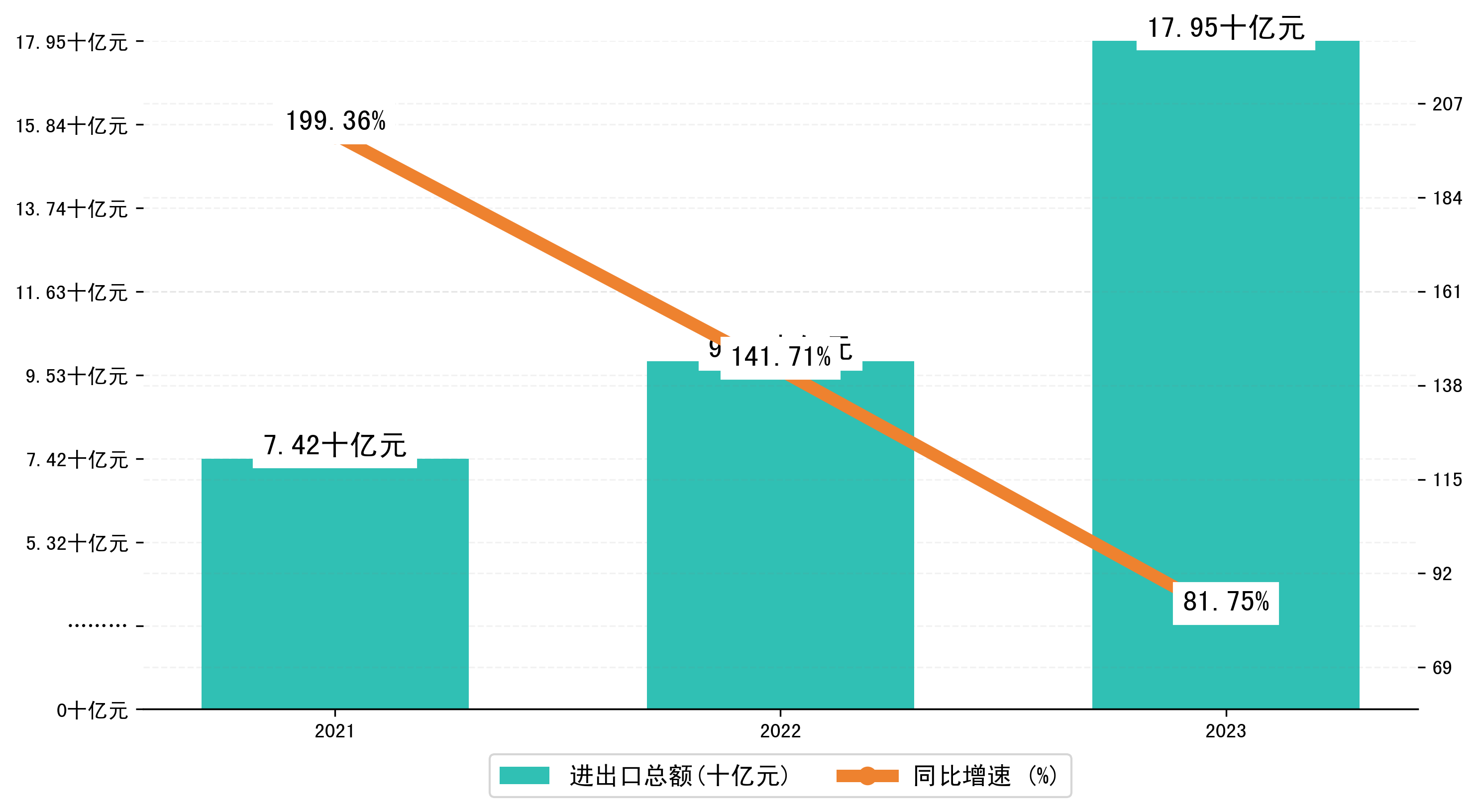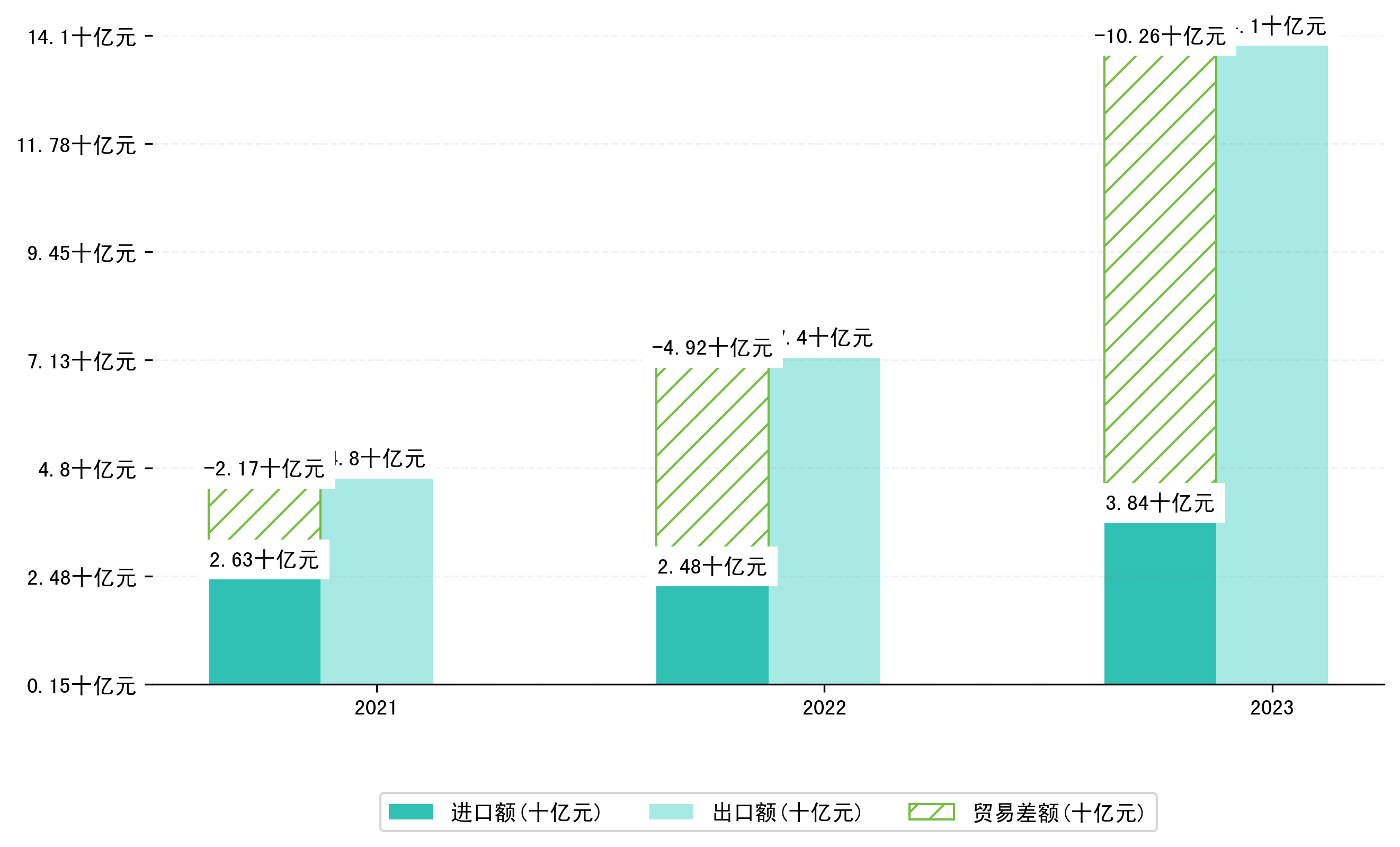 以人民币计,2023年1-6月安庆市贸易差额为102,6397,7326万元(贸易顺差),相比上年同期增加了53,4677,0825万元,同比增加108.74%。