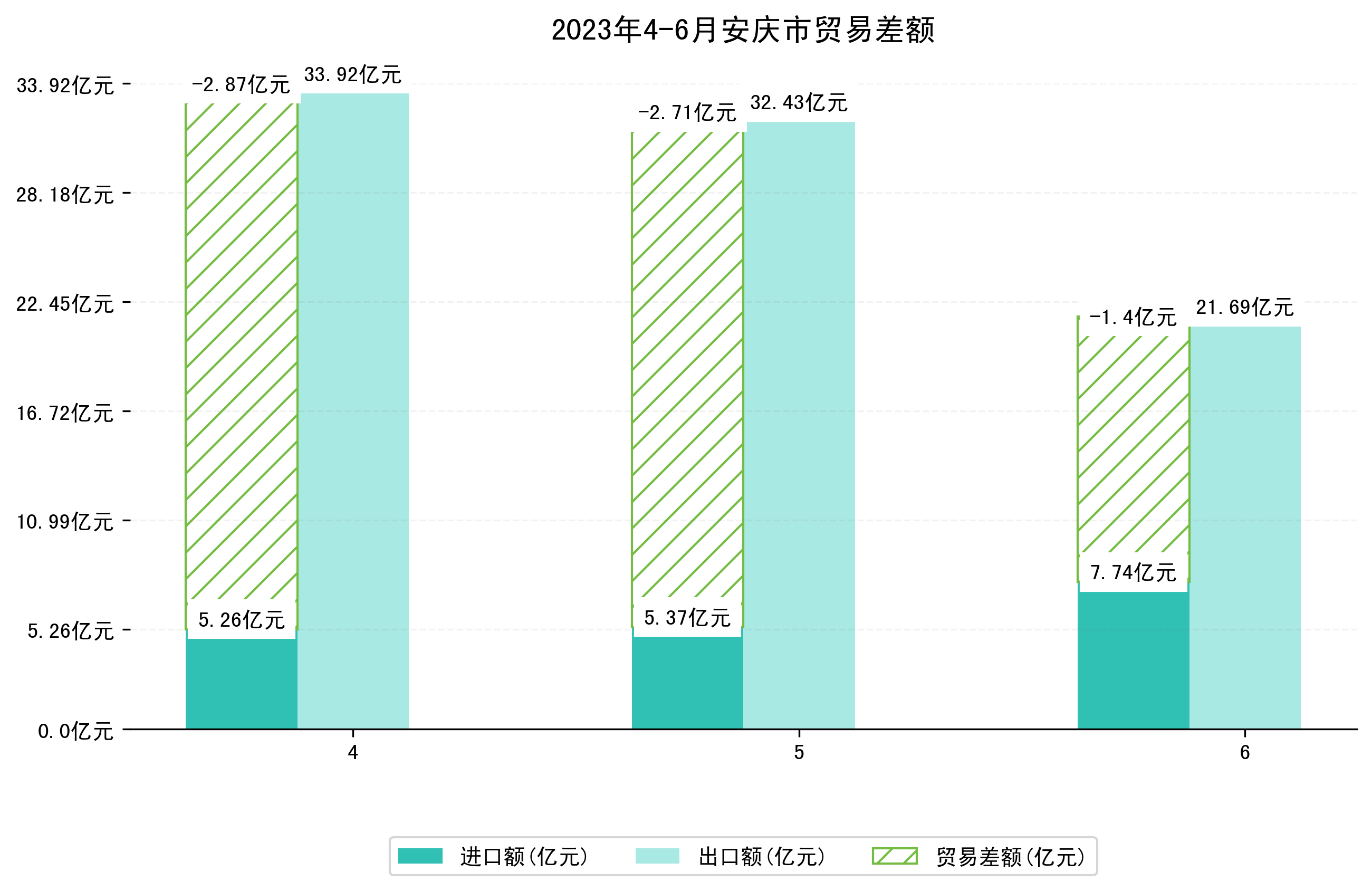 2023年6月安庆市进出口总额及进出口差额统计分析