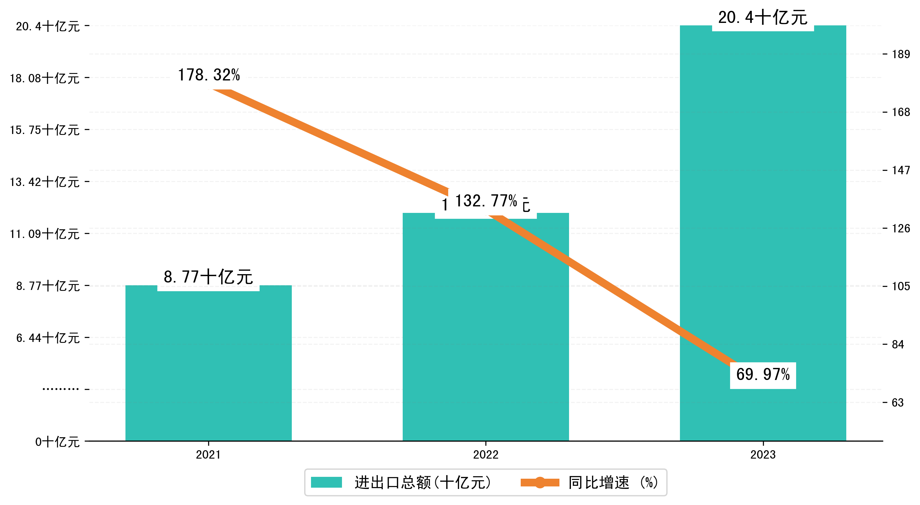 以人民币计,2023年1-7月安庆市进出口总额为204,0337.9621万元,相比上年同期增加了83,9937.4398万元,同比增加了70.00%。