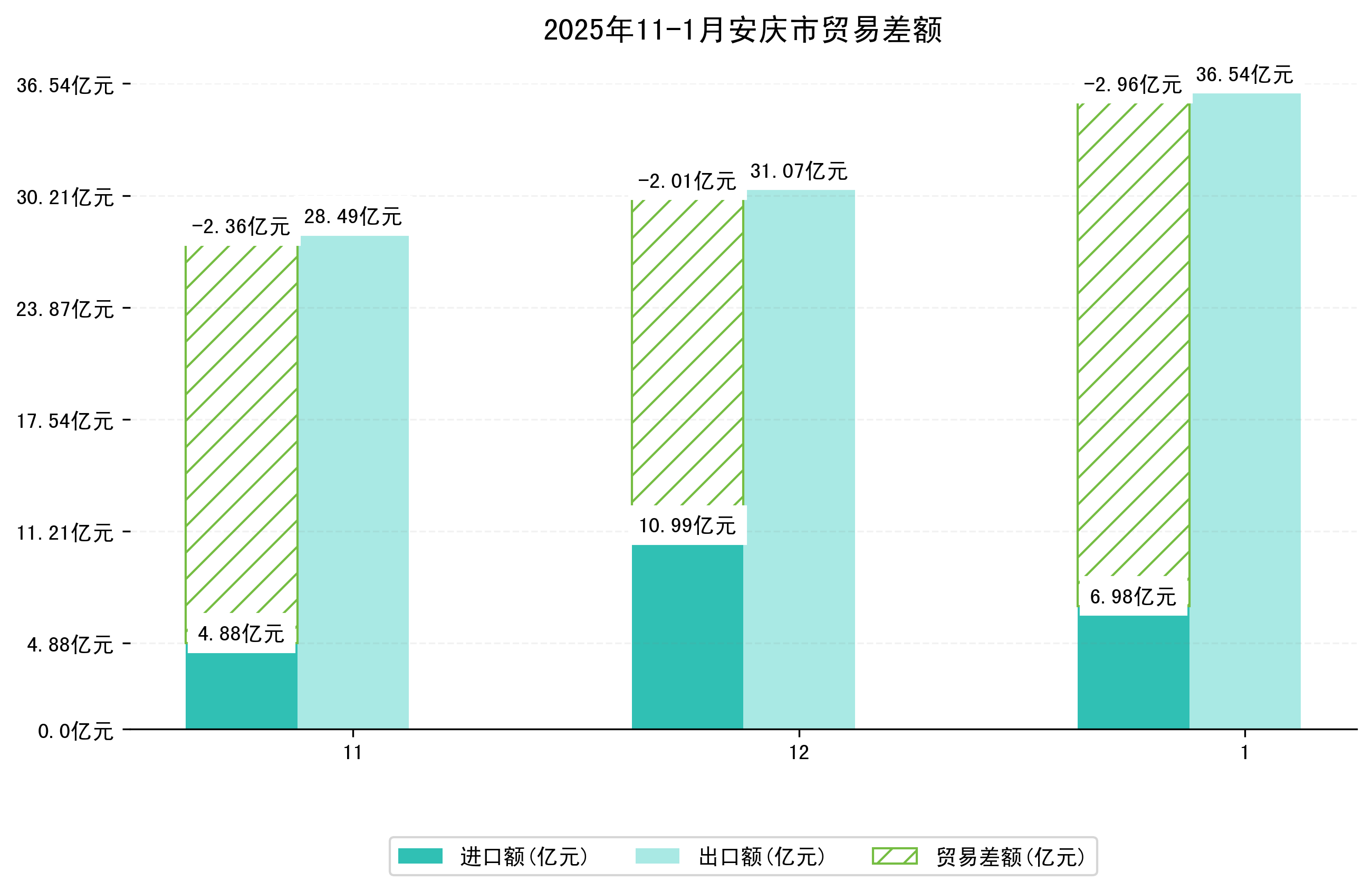 2025年1月安庆市进出口总额及进出口差额统计分析