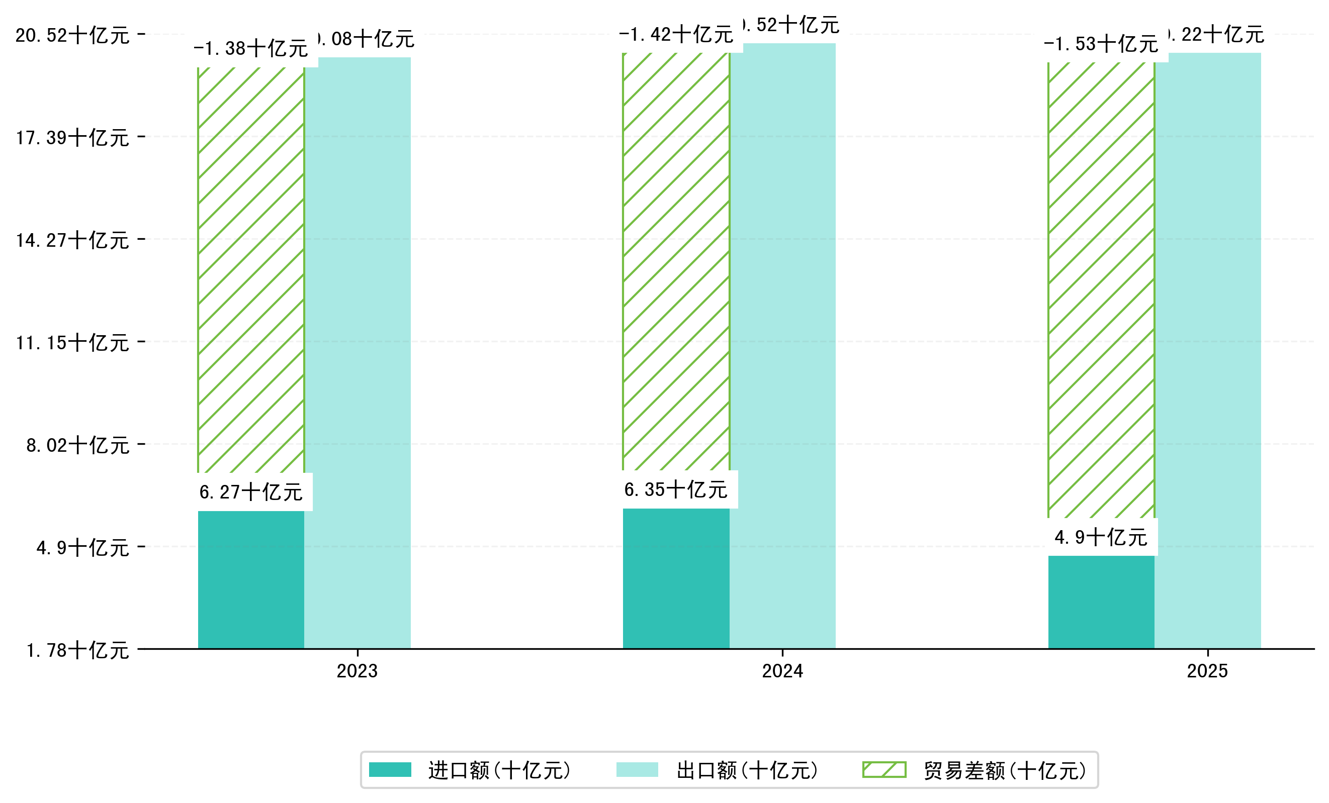 以人民币计,2025年1-9月安庆市贸易差额为153,2189,7393万元(贸易顺差),相比上年同期增加了11,5135,2841万元,同比增加8.12%。