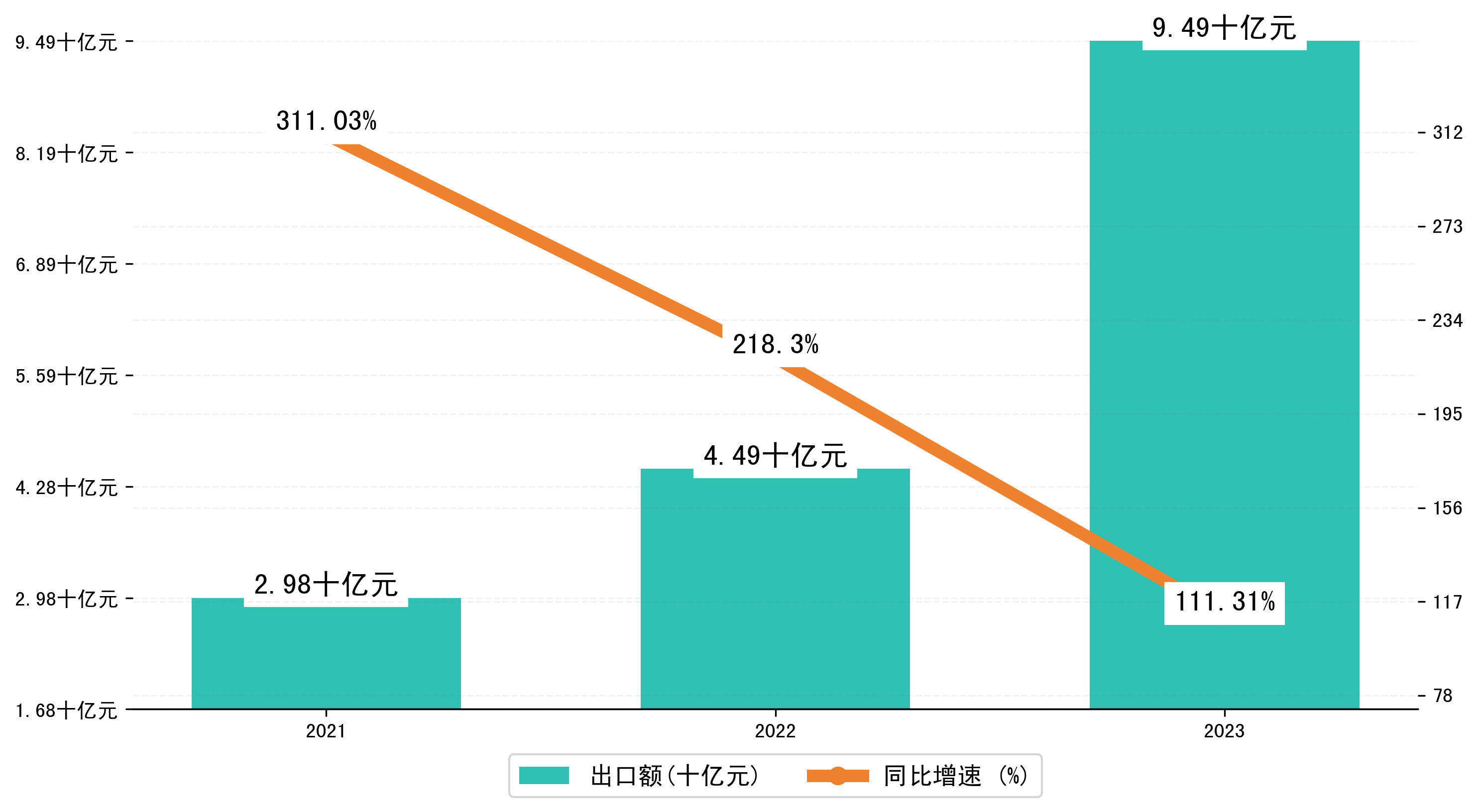 以人民币计,2023年1-4月安庆市出口额为94,9345.2451万元,相比上年同期增加了50,0077.9428万元,同比增加了111.30%。