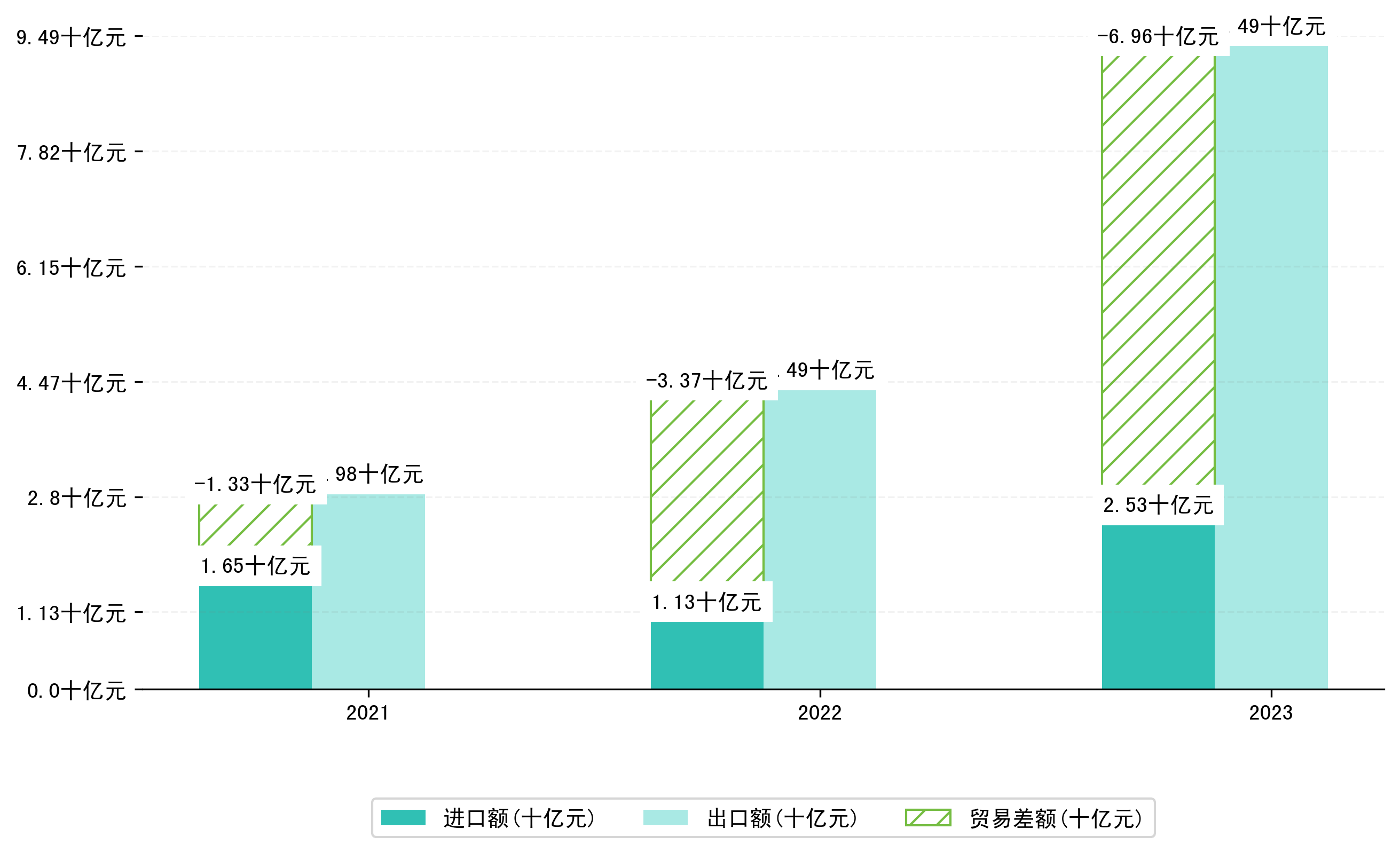 以人民币计,2023年4月安庆市贸易差额为28,6538,8958万元(贸易顺差),相比上月增加了10,5009,1244万元,即1,5096,0380万美元;相比上年同期增加了20,8641,9536万元,同比增加267.84%。