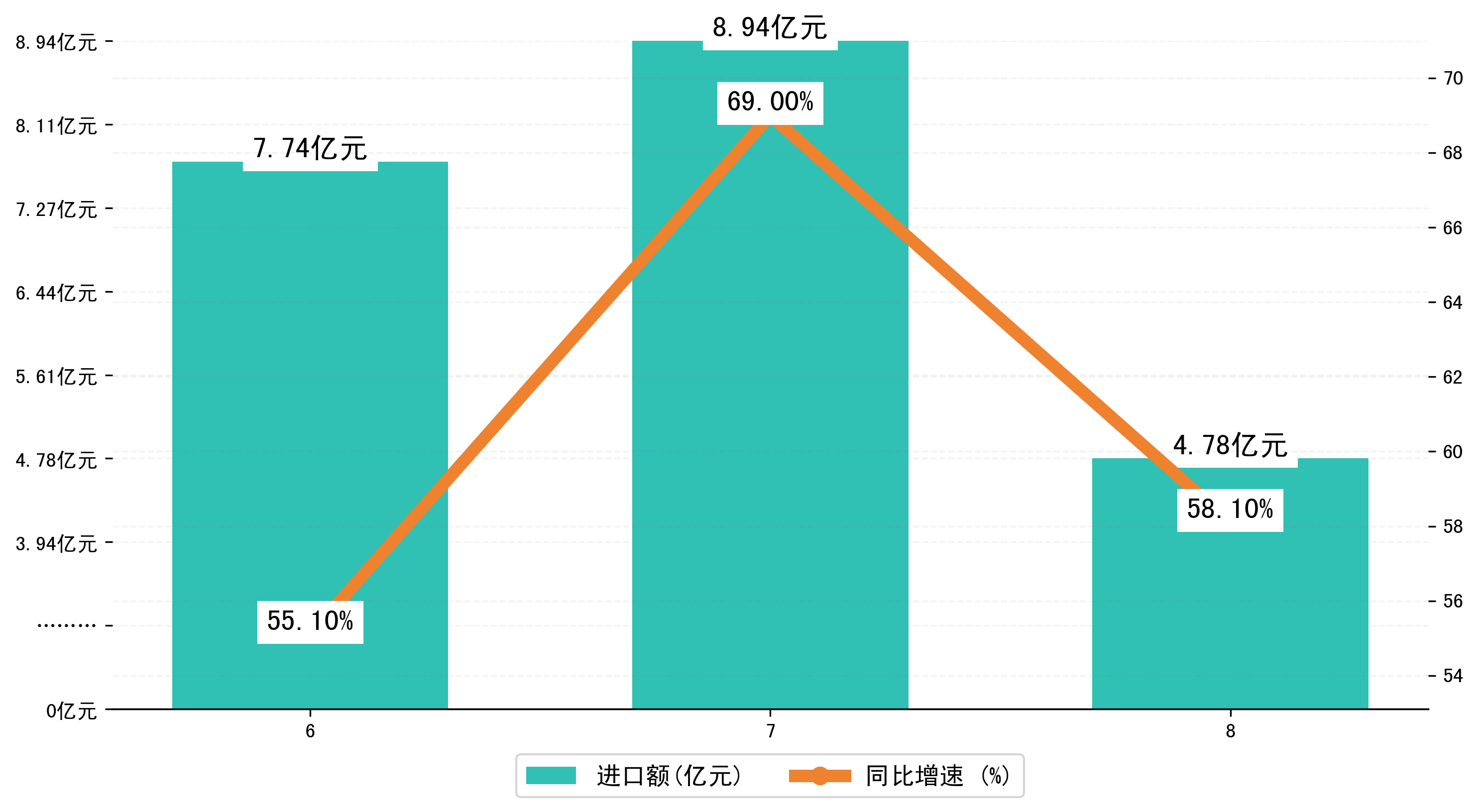 (图三:2023年6-8月安庆市进口额)