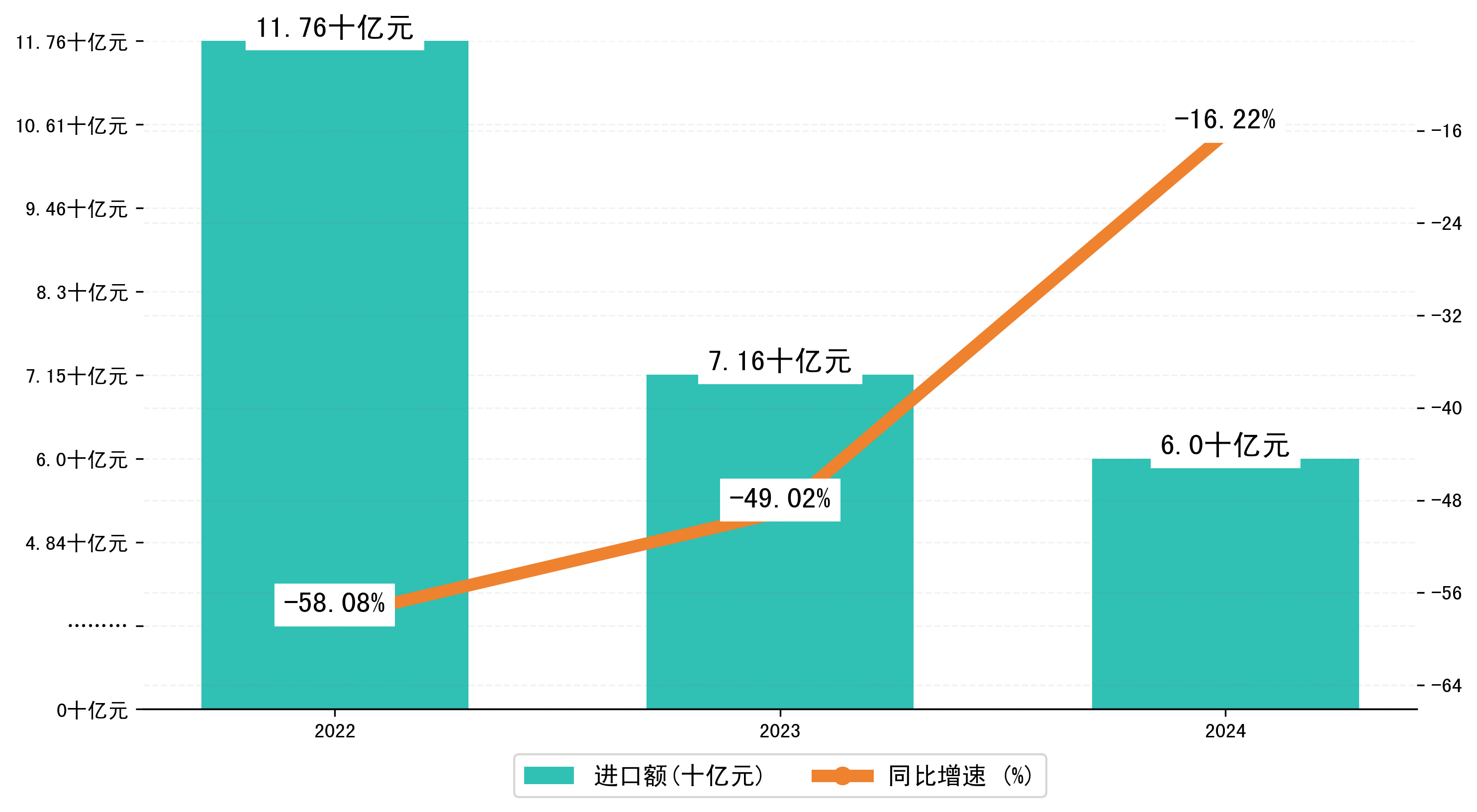 以人民币计,2024年1-6月鞍山市进口额为59,9728.558万元,相比上年同期减少了11,6067.0973万元,同比减少了-19.90%。