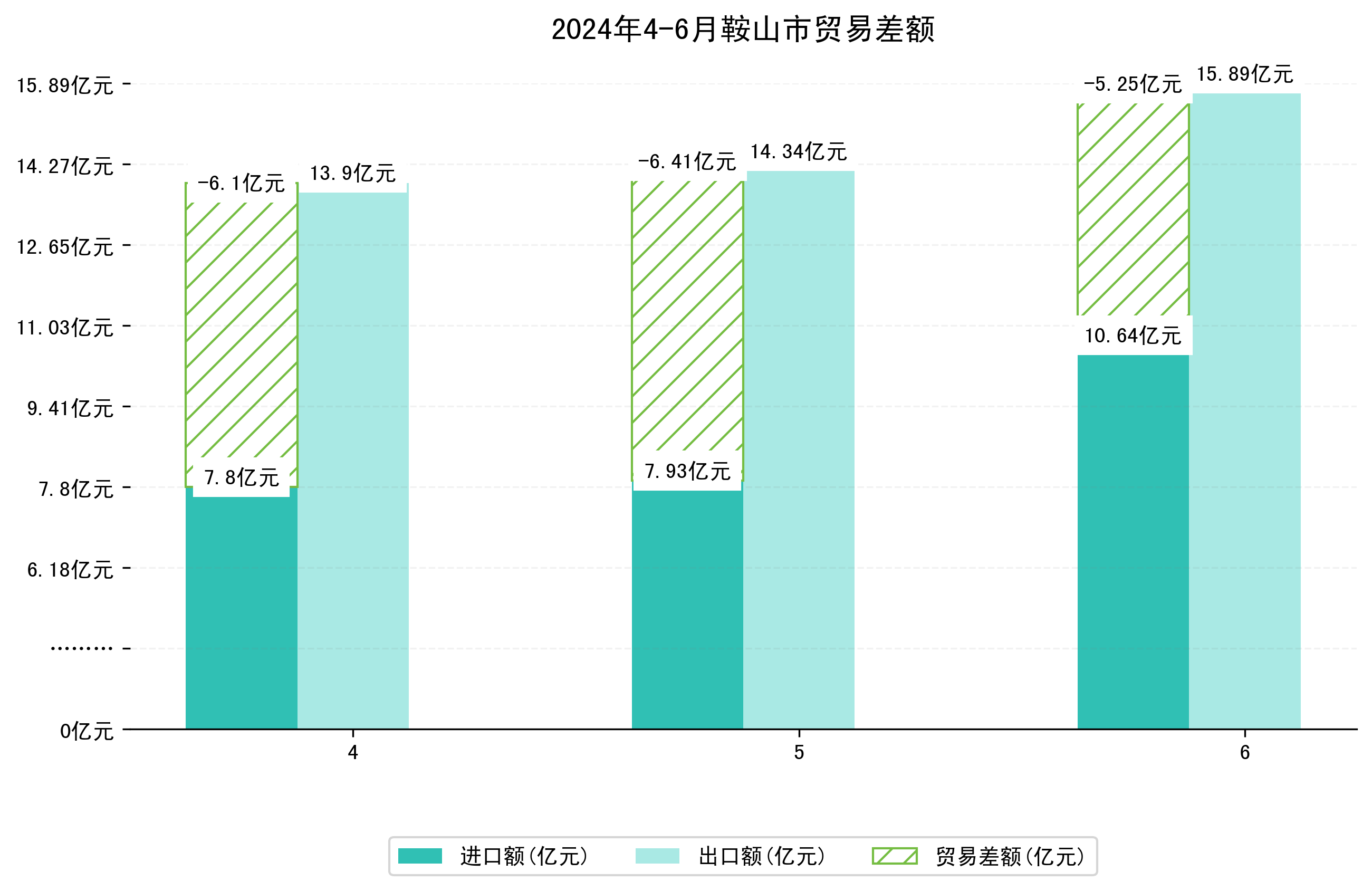 2024年6月鞍山市进出口总额及进出口差额统计分析