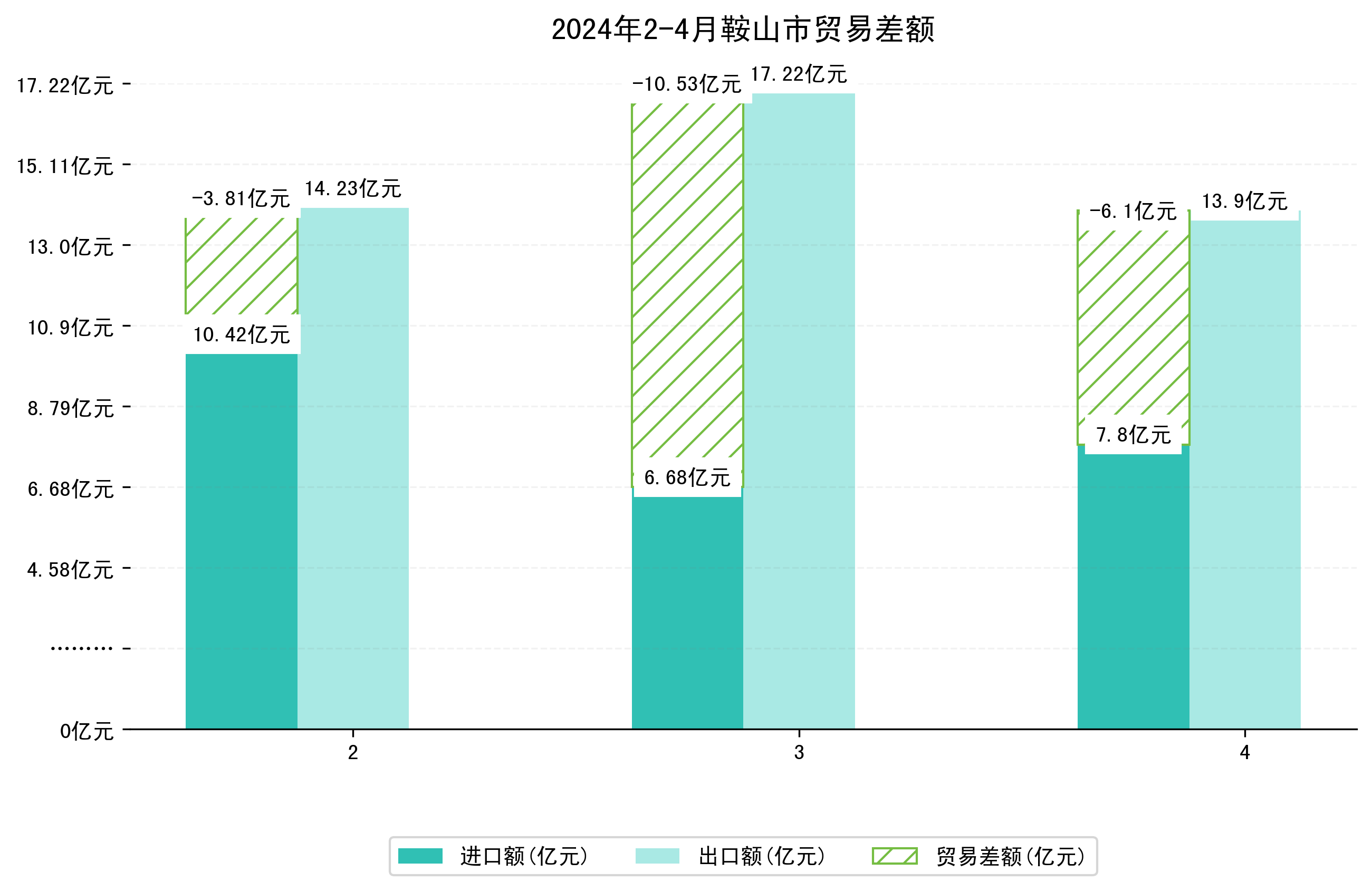 2024年4月鞍山市进出口总额及进出口差额统计分析