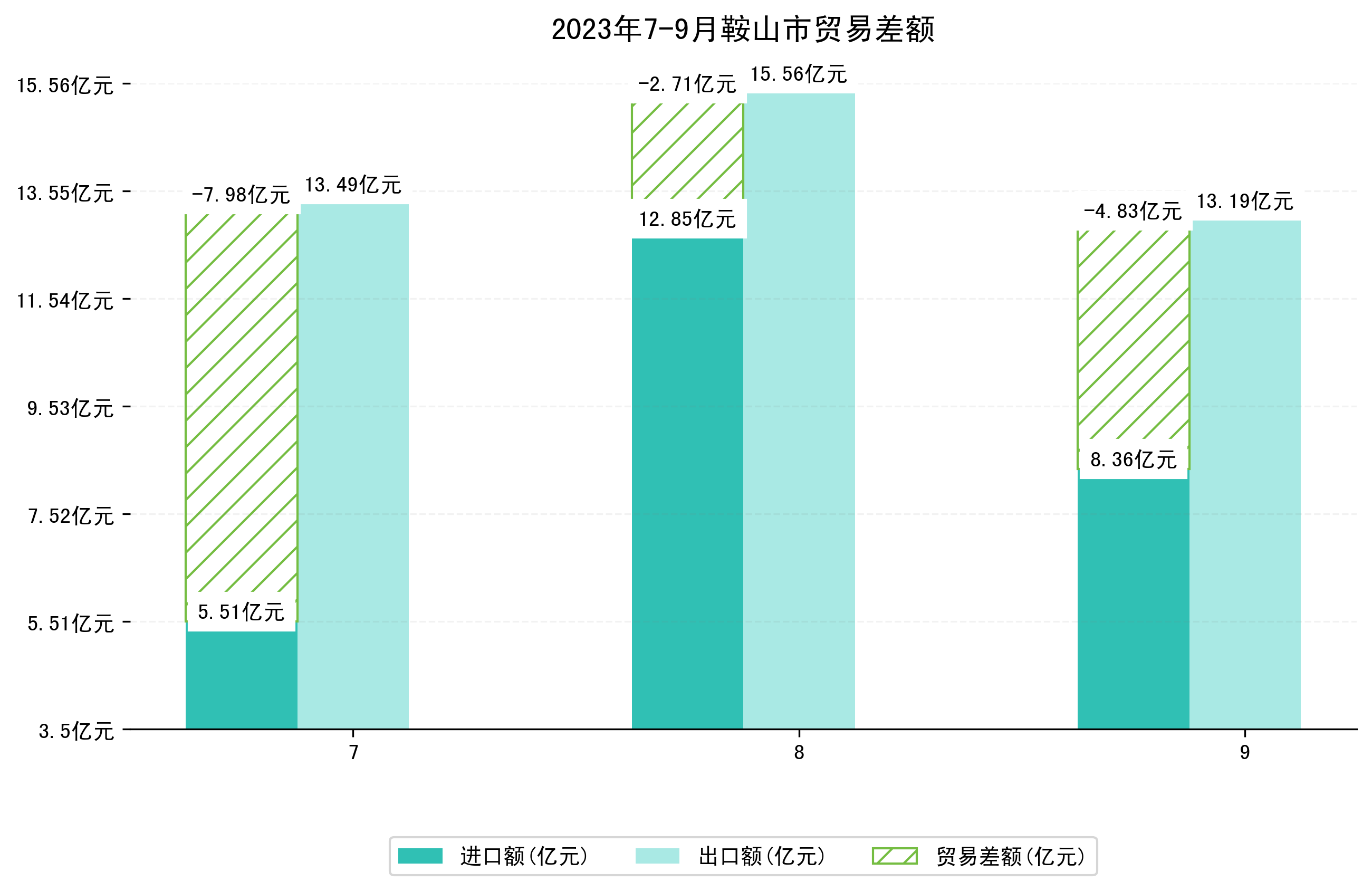 2023年9月鞍山市进出口总额及进出口差额统计分析