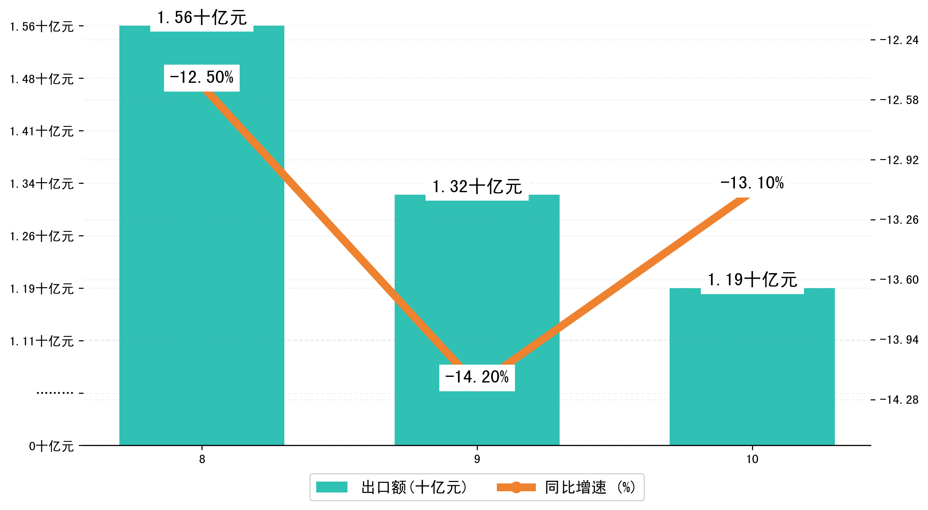 以人民币计,2023年10月鞍山市出口额为11,8767.1578万元,相比上月减少了1,3111.6677万元;相比上年同期增加了1366.3883万元,同比减少了-13.10%。