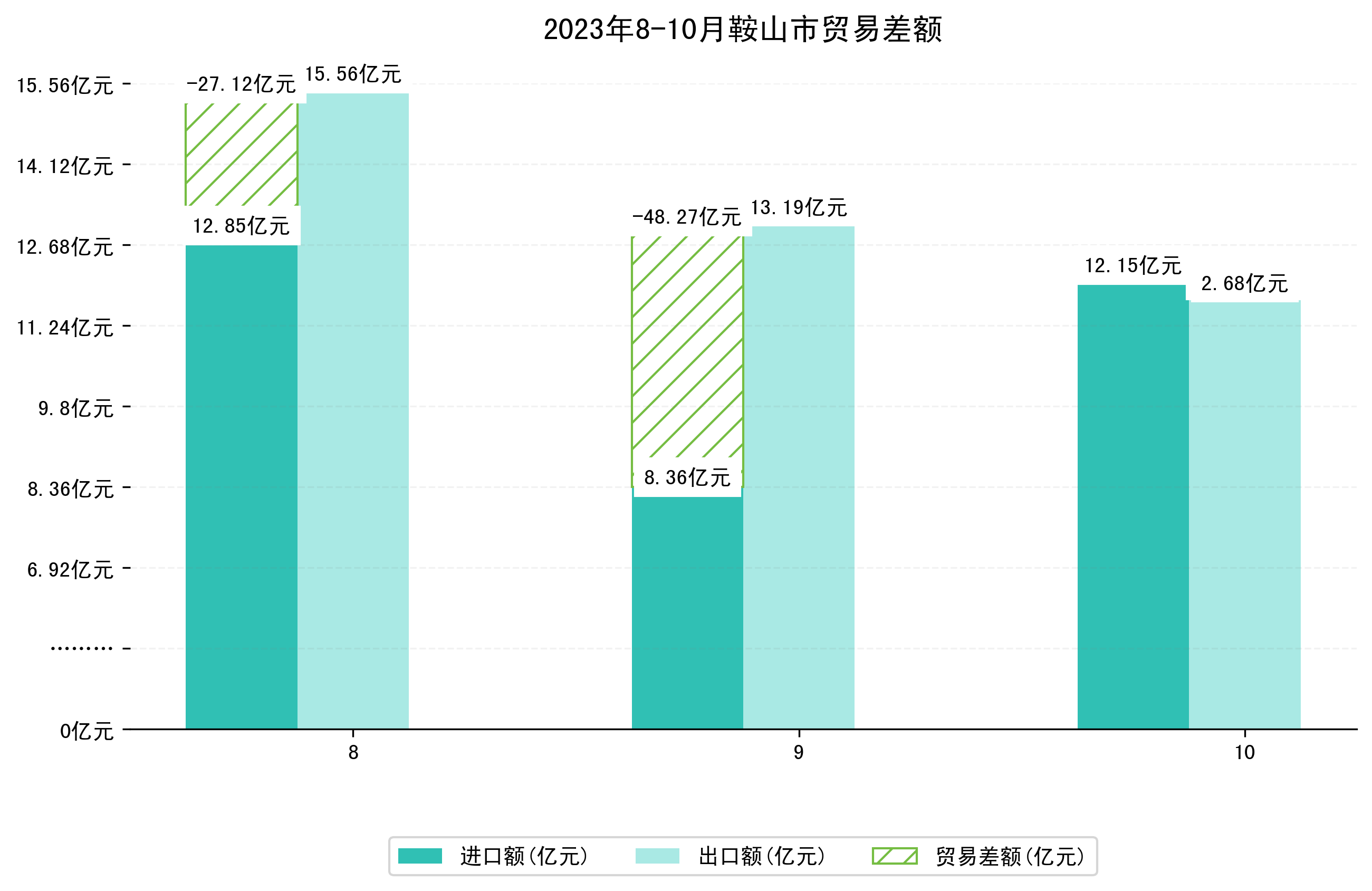 2023年10月鞍山市进出口总额及进出口差额统计分析