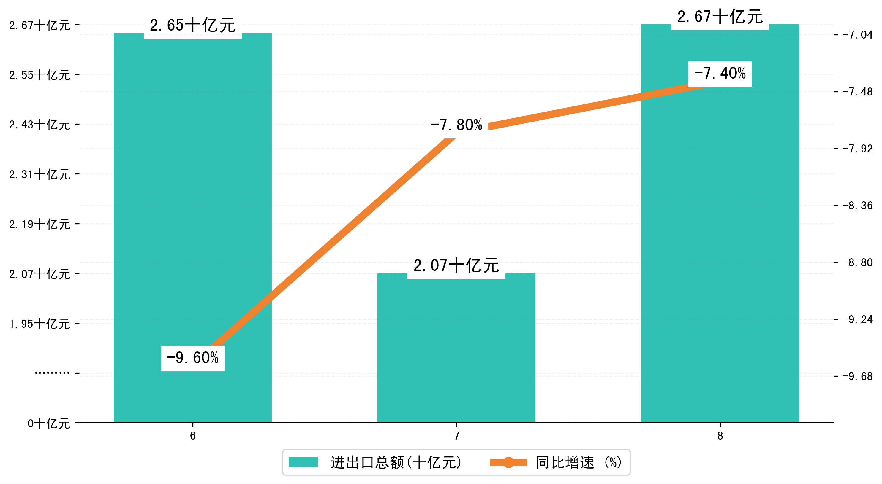 (图一:2024年6-8月鞍山市进出口总额)