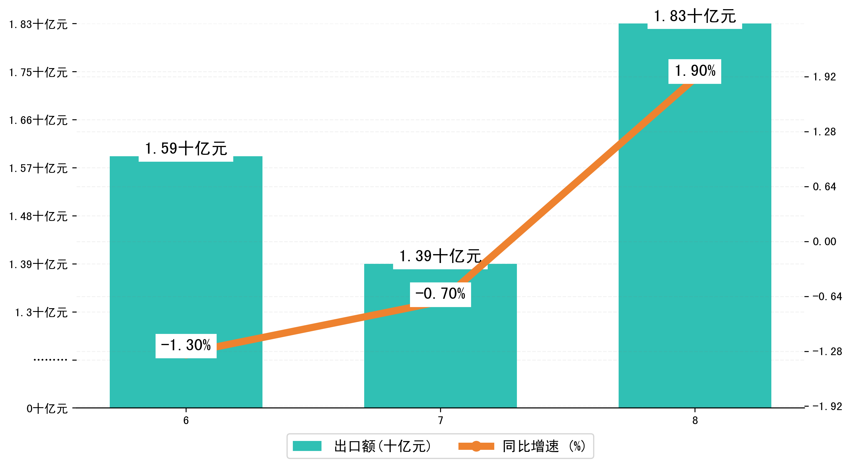 (图二:2024年6-8月鞍山市出口额)