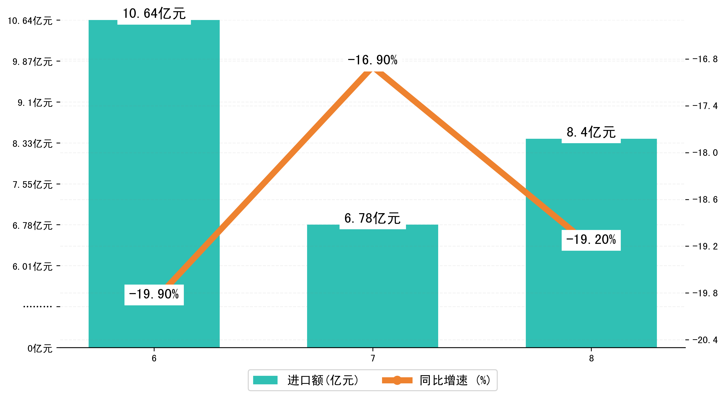 (图三:2024年6-8月鞍山市进口额)