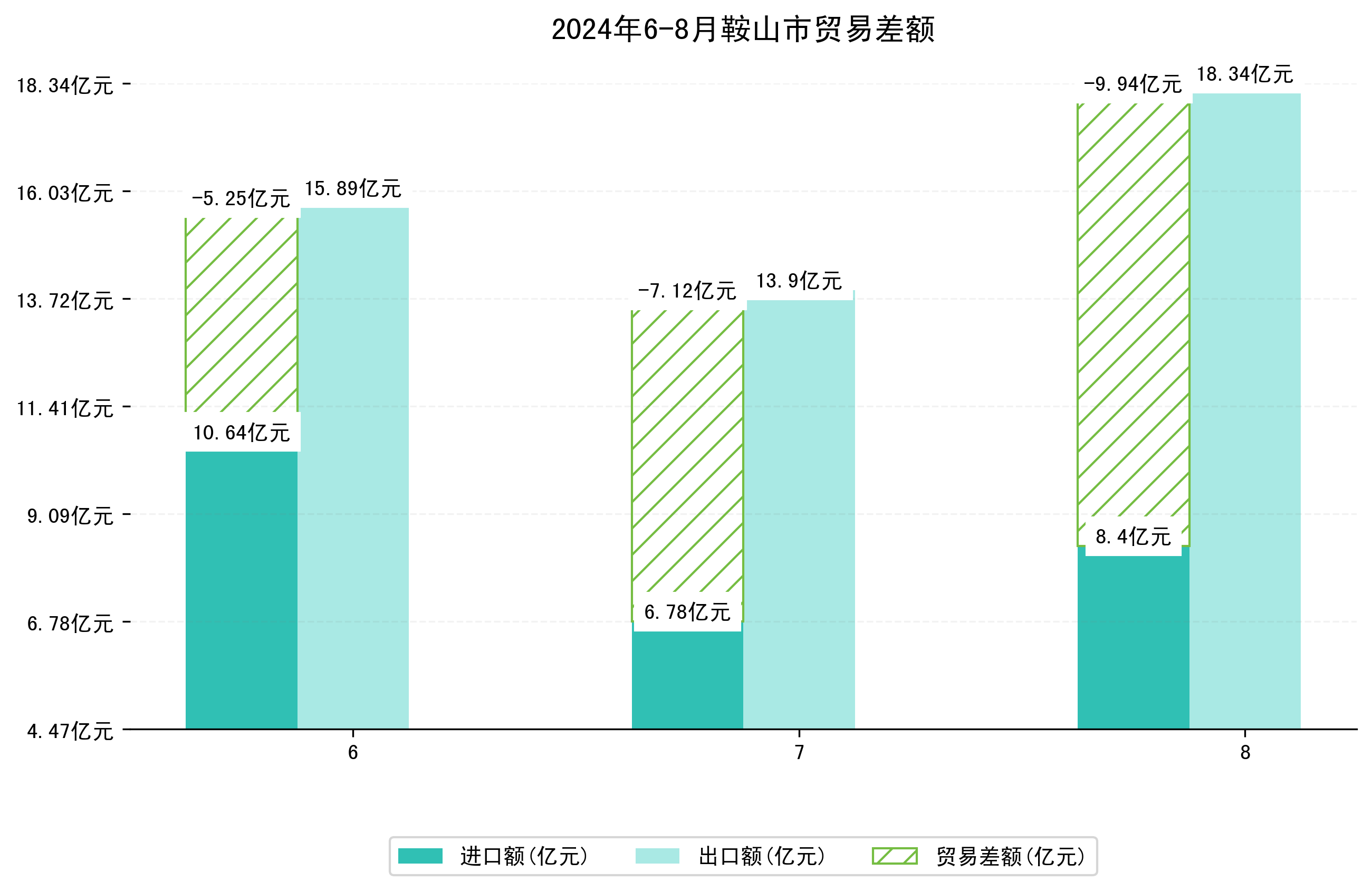 (图四:2024年6-8月鞍山市贸易差额)
