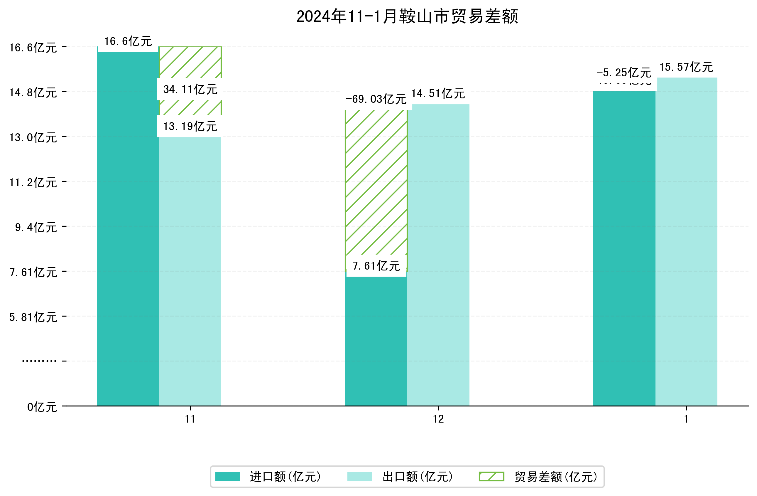 (图四:2024年11-1月鞍山市贸易差额)