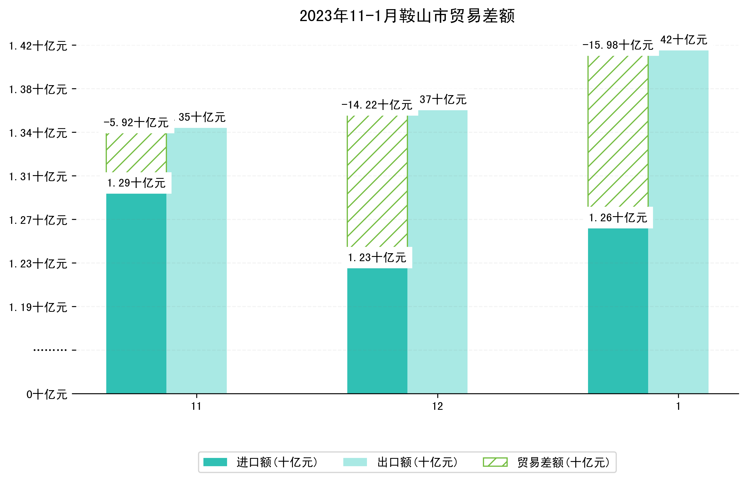 2023年1月鞍山市进出口总额及进出口差额统计分析
