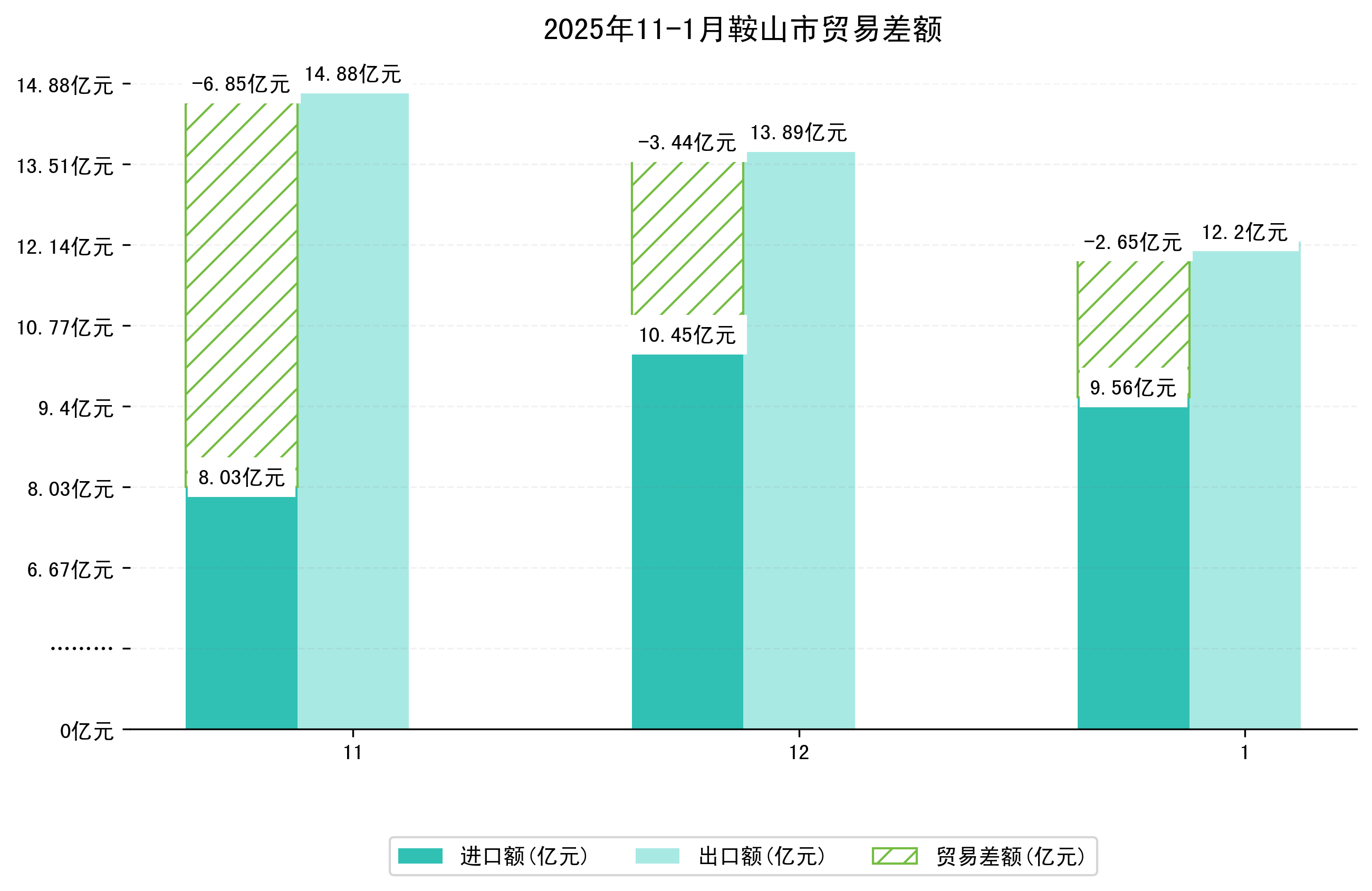 2025年1月鞍山市进出口总额及进出口差额统计分析