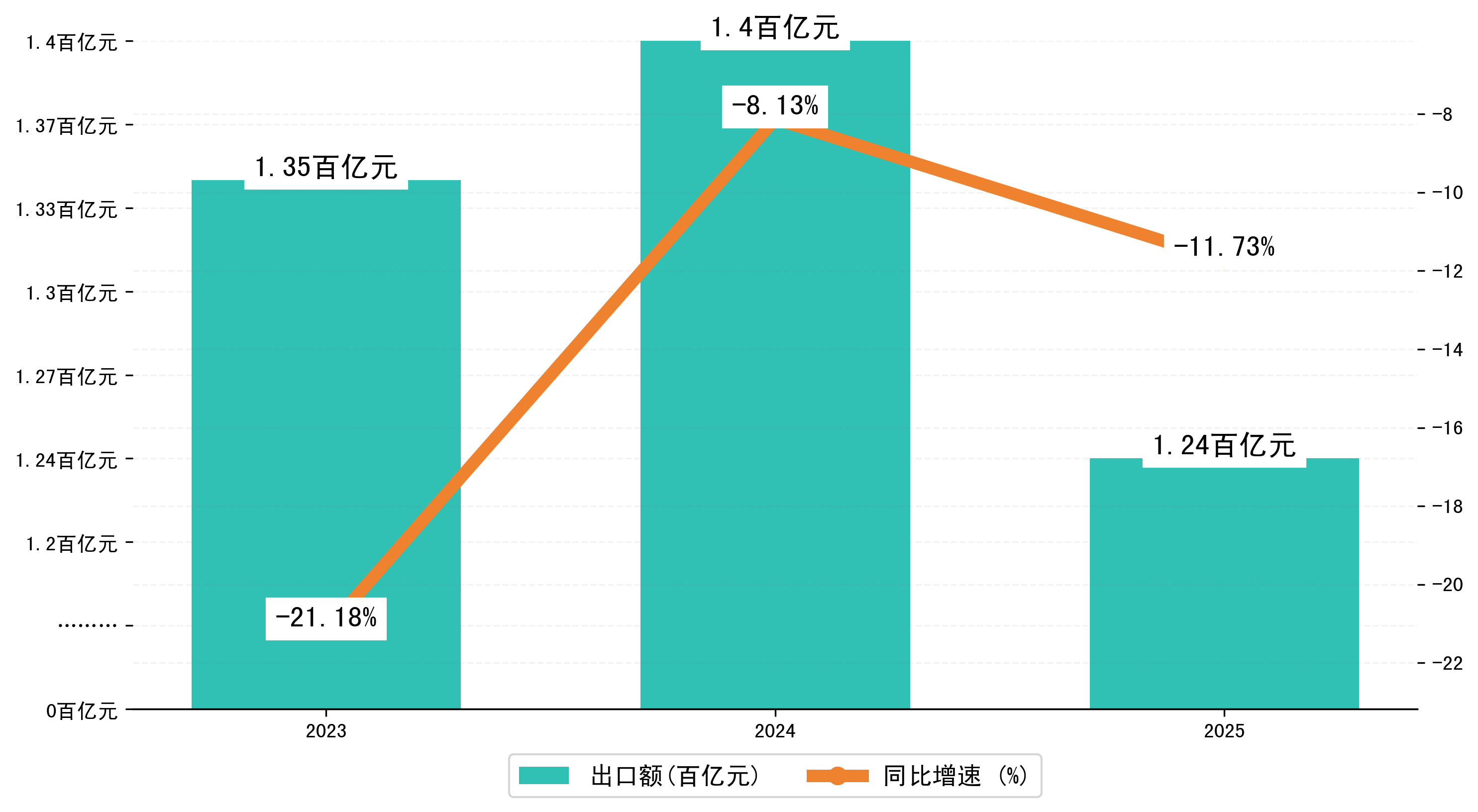 以人民币计,2025年9月鞍山市出口额为14,4007.997万元,相比上月增加了2,0146.964万元;相比上年同期减少了2,2651.8929万元,同比减少了-11.70%。