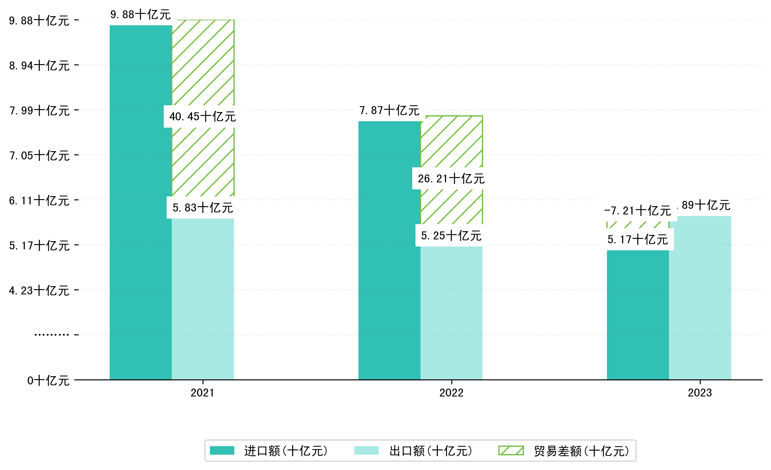 以美元计,2023年4月鞍山市贸易差额为1870,6608万美元(贸易顺差),相比上月减少了2577,6794万美元;相比上年同期增加了5510,2109万美元,同比增加-151.4%。