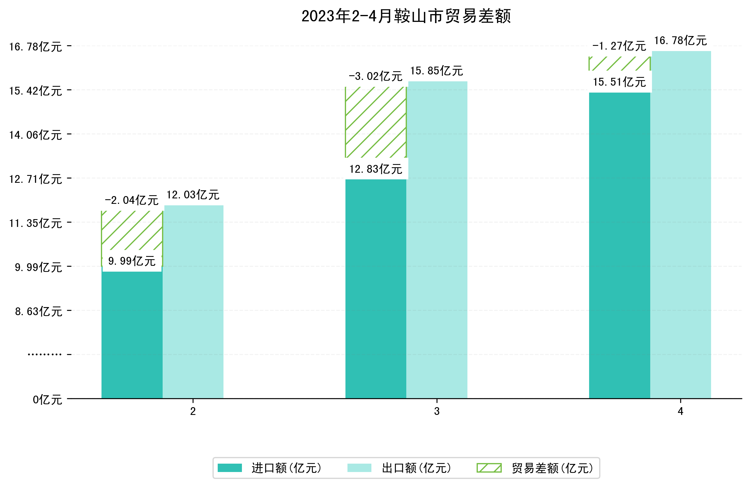 2023年4月鞍山市进出口总额及进出口差额统计分析
