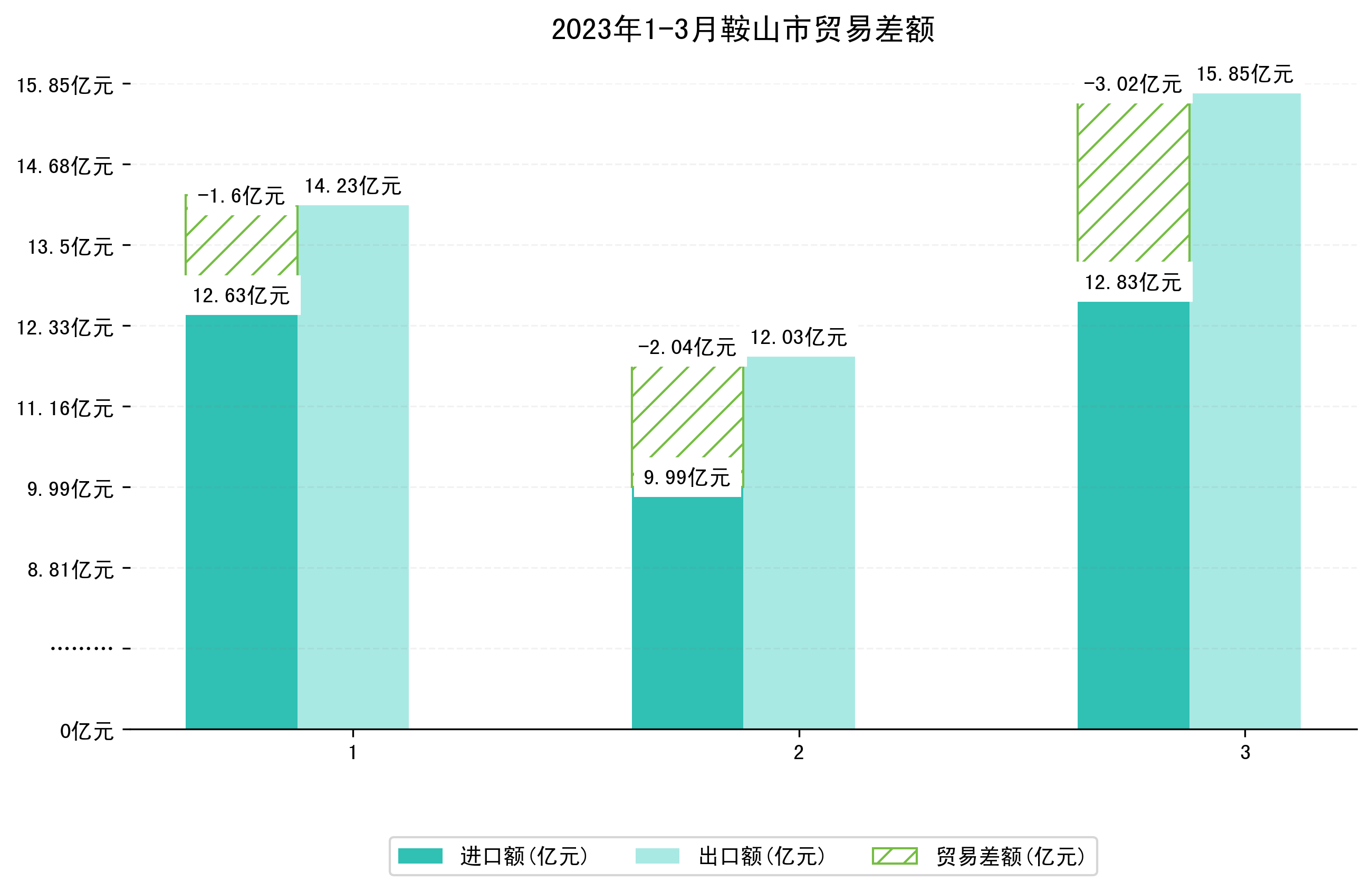 (图一:2023年1-3月鞍山市进出口总额)