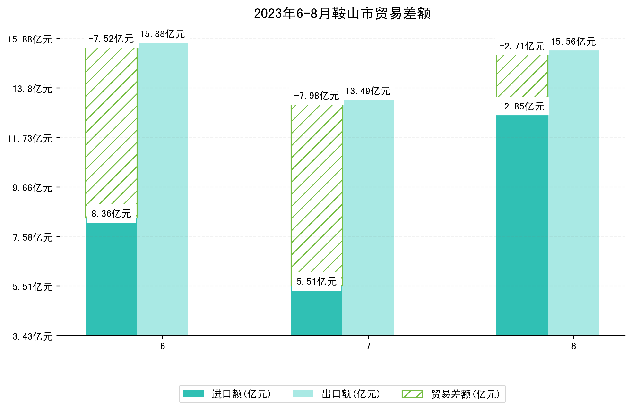 2023年8月鞍山市进出口总额及进出口差额统计分析