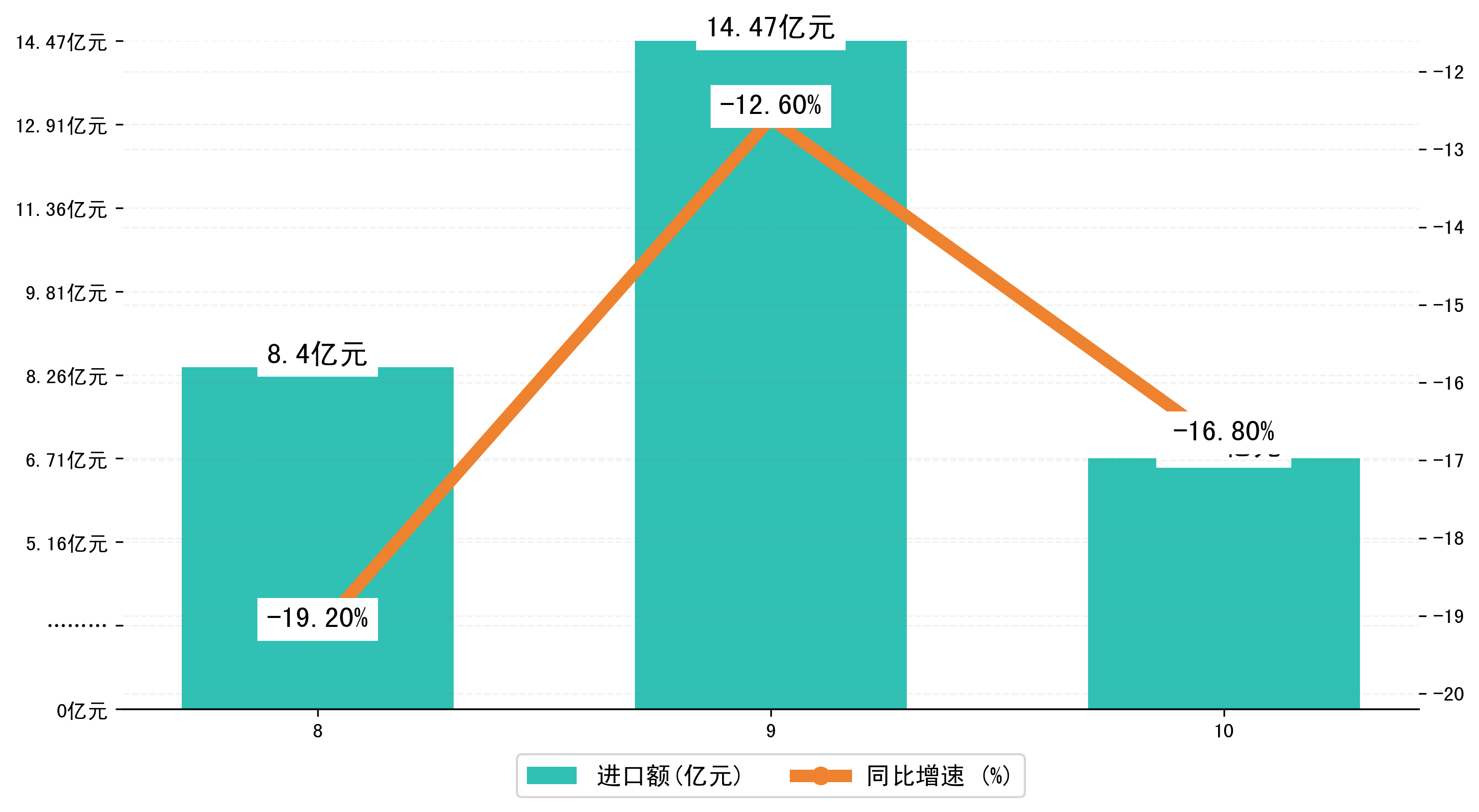 (图三:2024年8-10月鞍山市进口额)