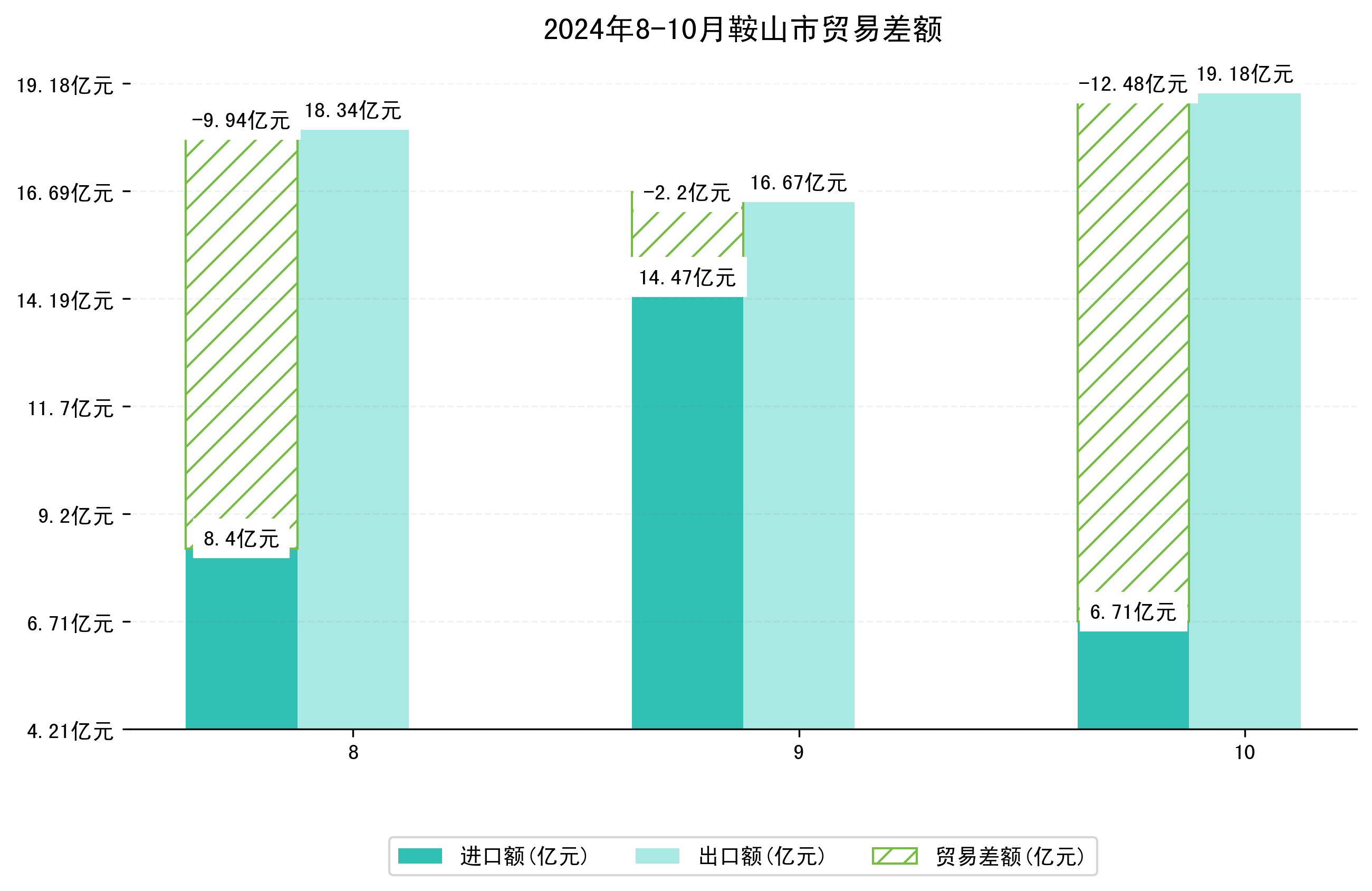 (图四:2024年8-10月鞍山市贸易差额)