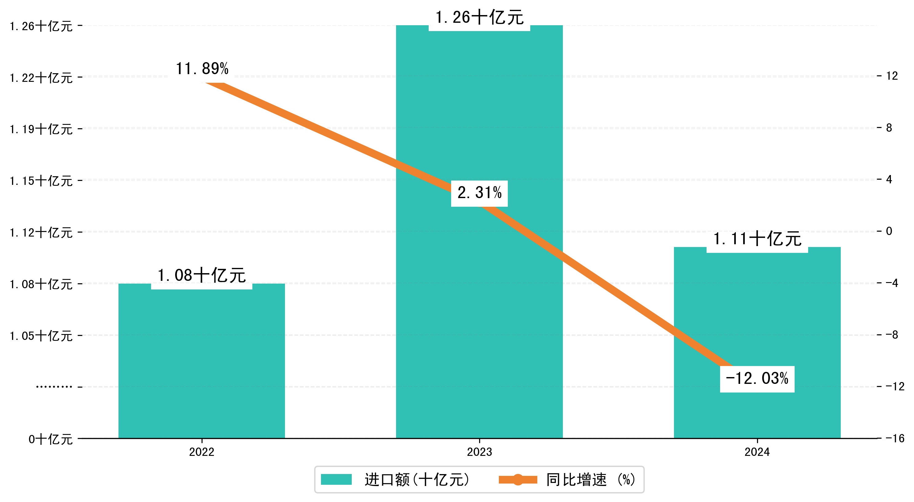 以人民币计,2024年1-4月保定市进口额为11,0833.1527万元,相比上年同期减少了1,5151.3081万元,同比减少了-11.90%。
