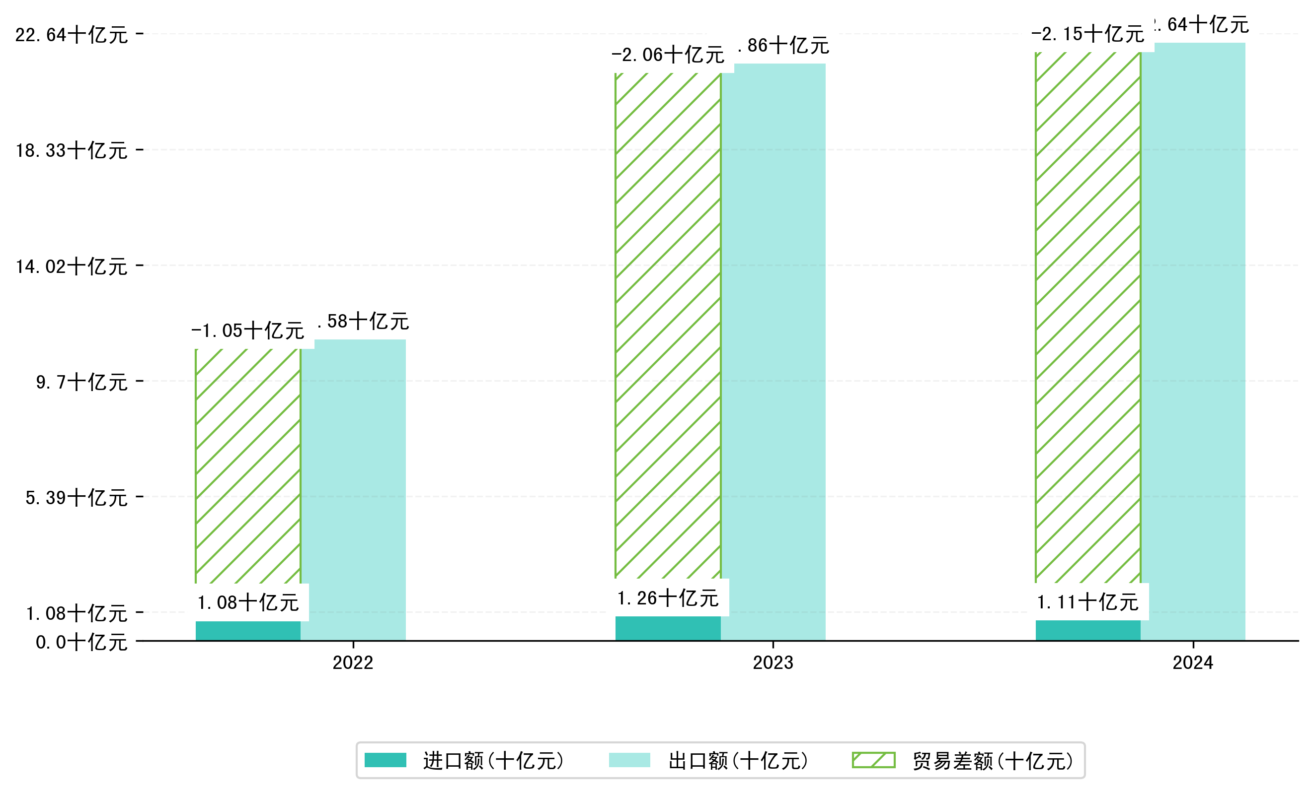 以人民币计,2024年1-4月保定市贸易差额为215,2842,7371万元(贸易顺差),相比上年同期增加了9,2619,1022万元,同比增加4.5%。