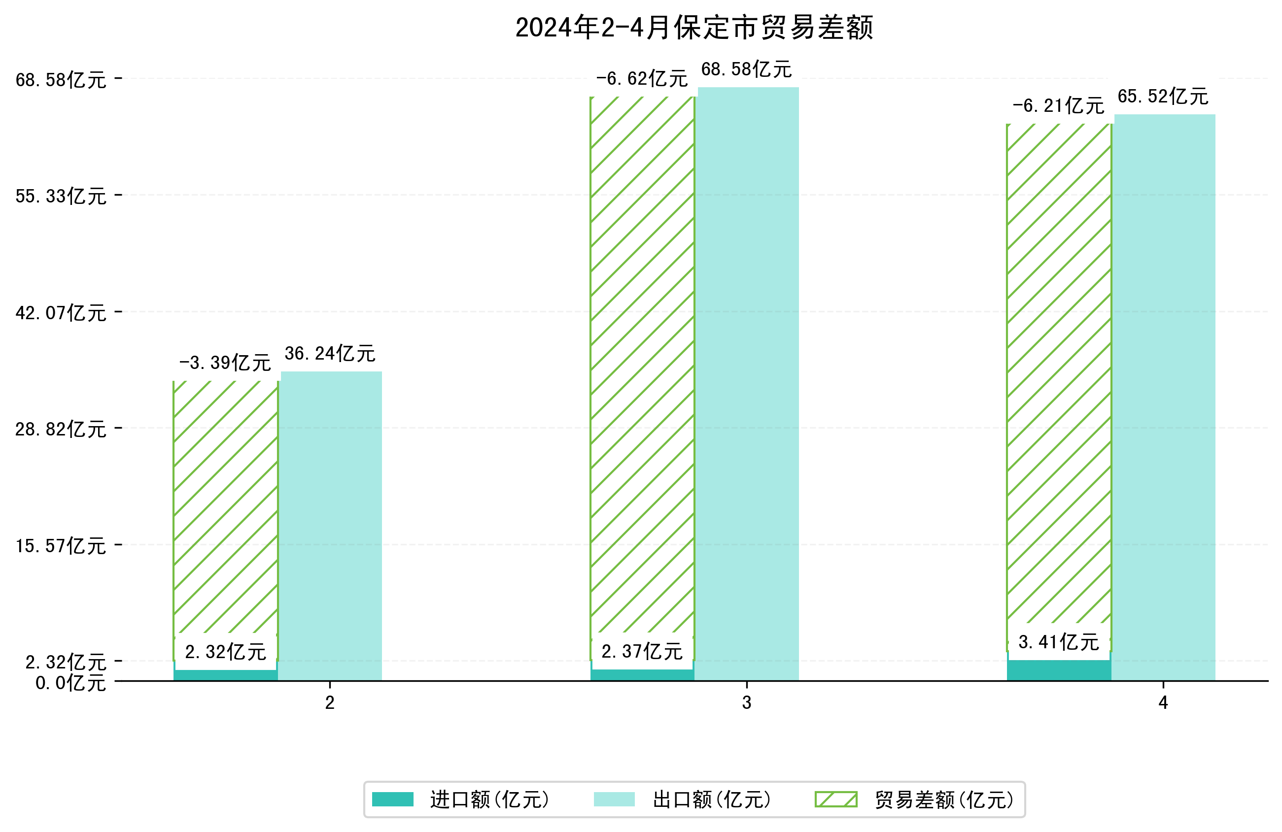 一、2024年4月保定市单月出口总额及进出口差额统计分析