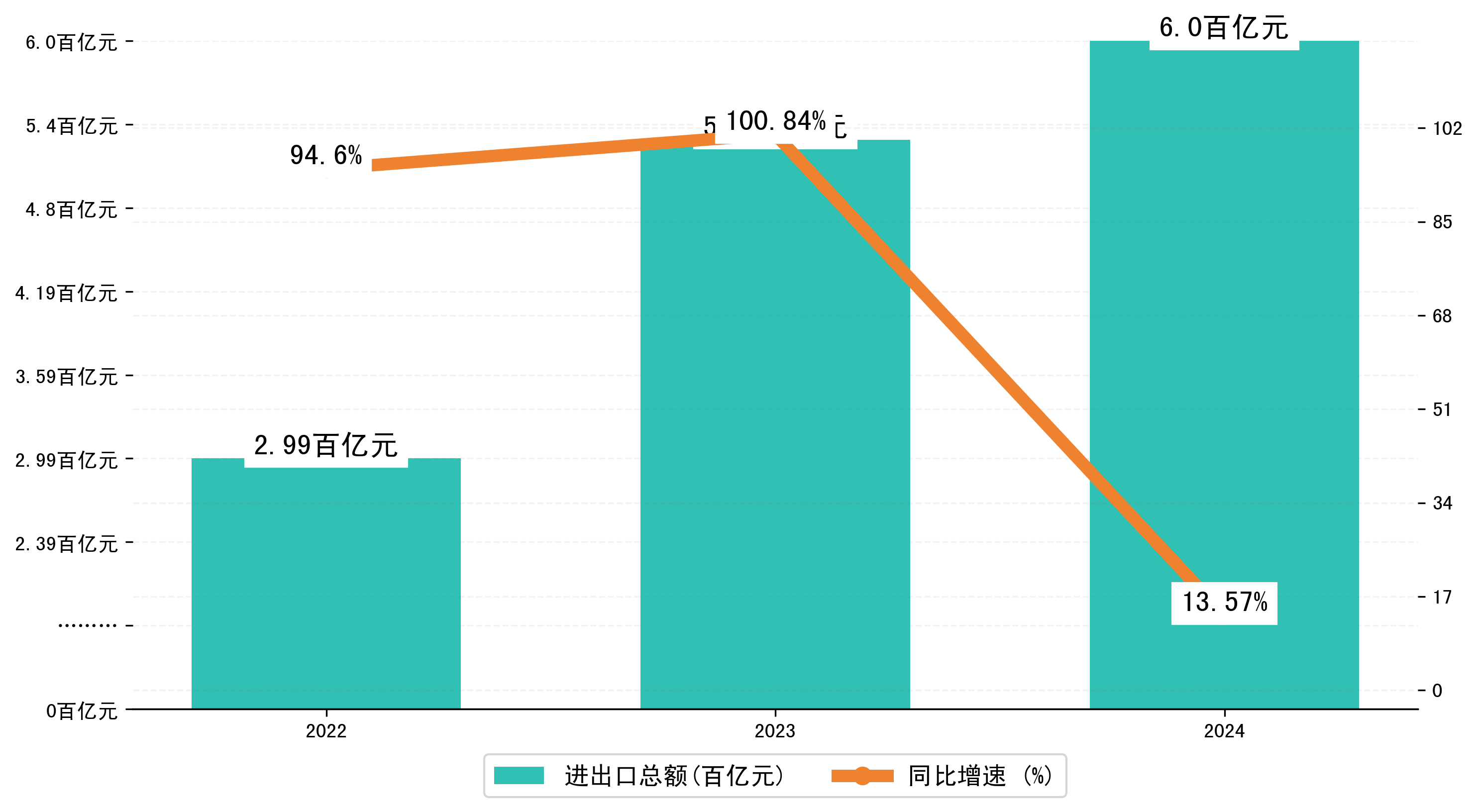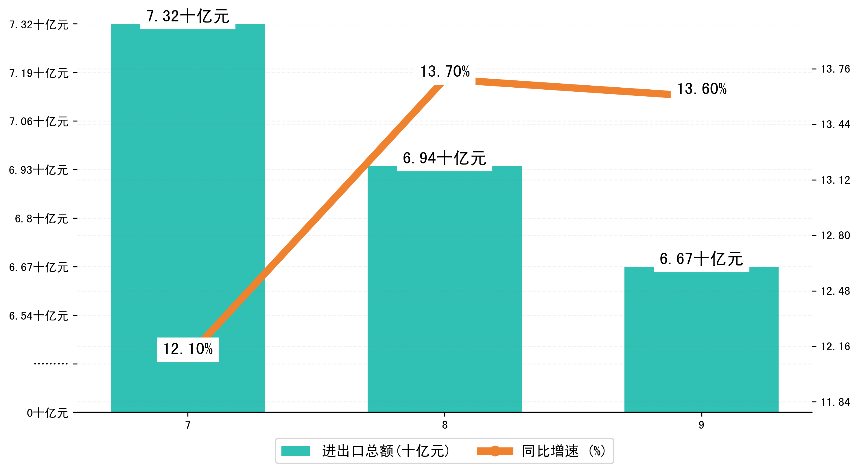 以人民币计,2024年1-9月保定市进出口总额为600,2998.2355万元,相比上年同期增加了71,7322.3962万元,同比增加了13.60%。
