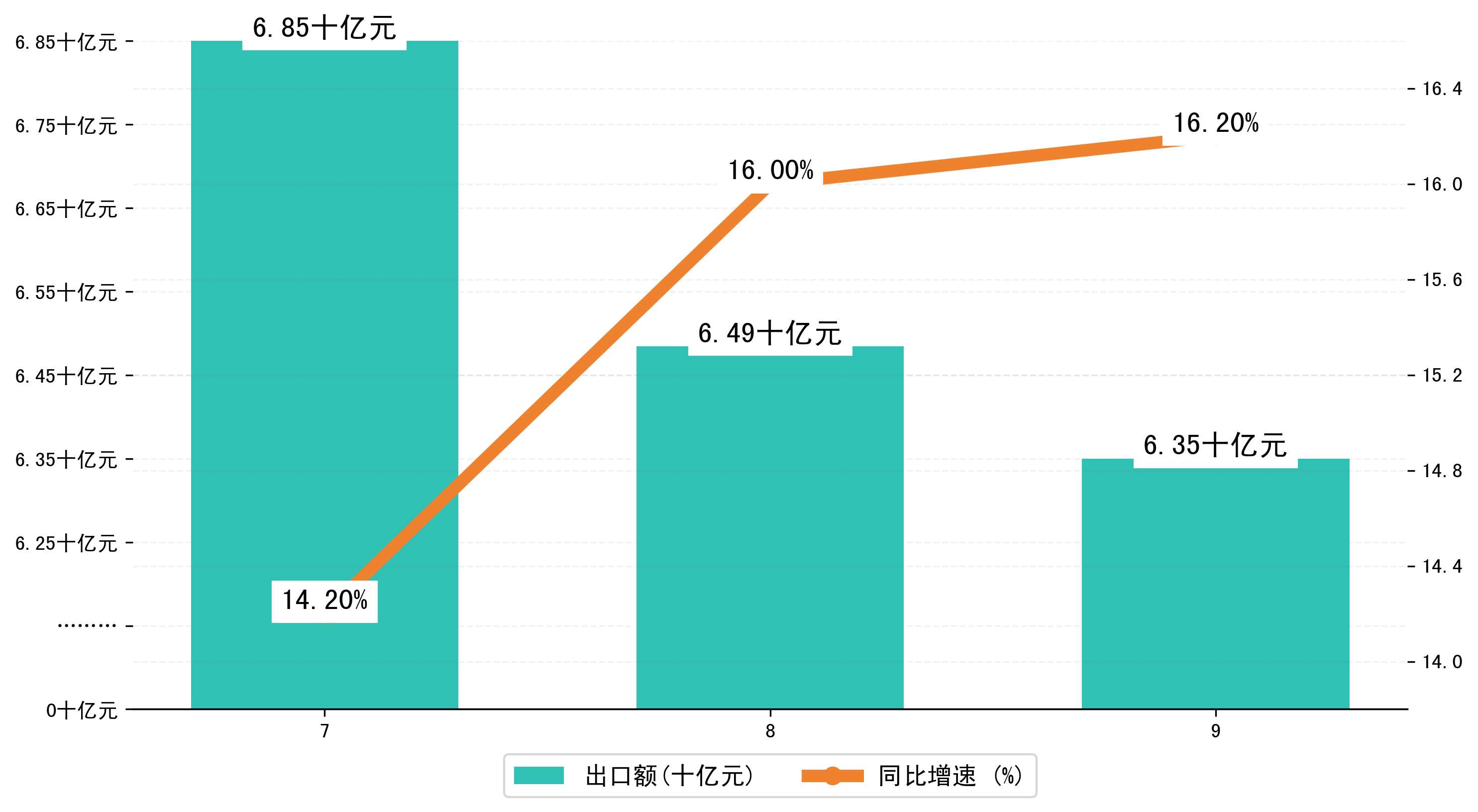 以人民币计,2024年1-9月保定市出口额为570,4809.6348万元,相比上年同期增加了79,5670.0921万元,同比增加了16.20%。