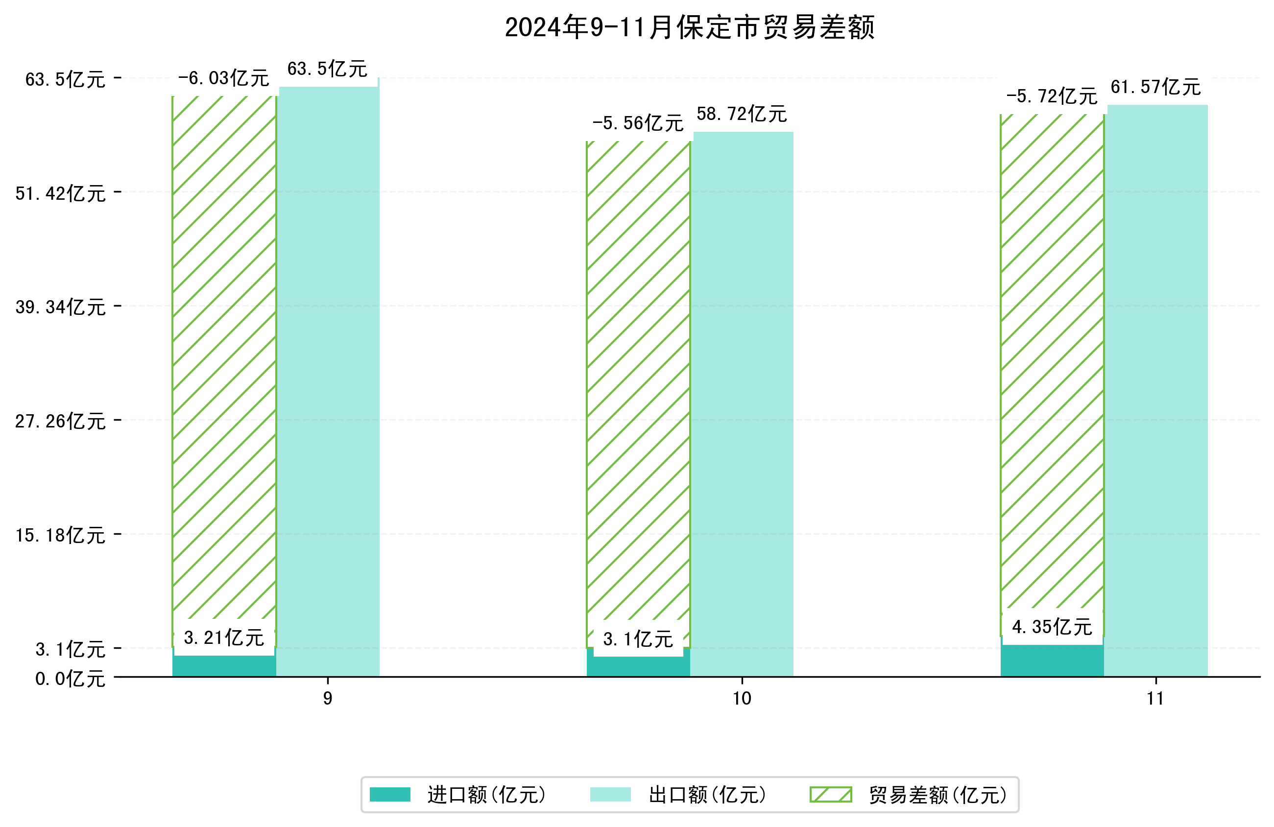 (图一:2024年9-11月保定市进出口总额)