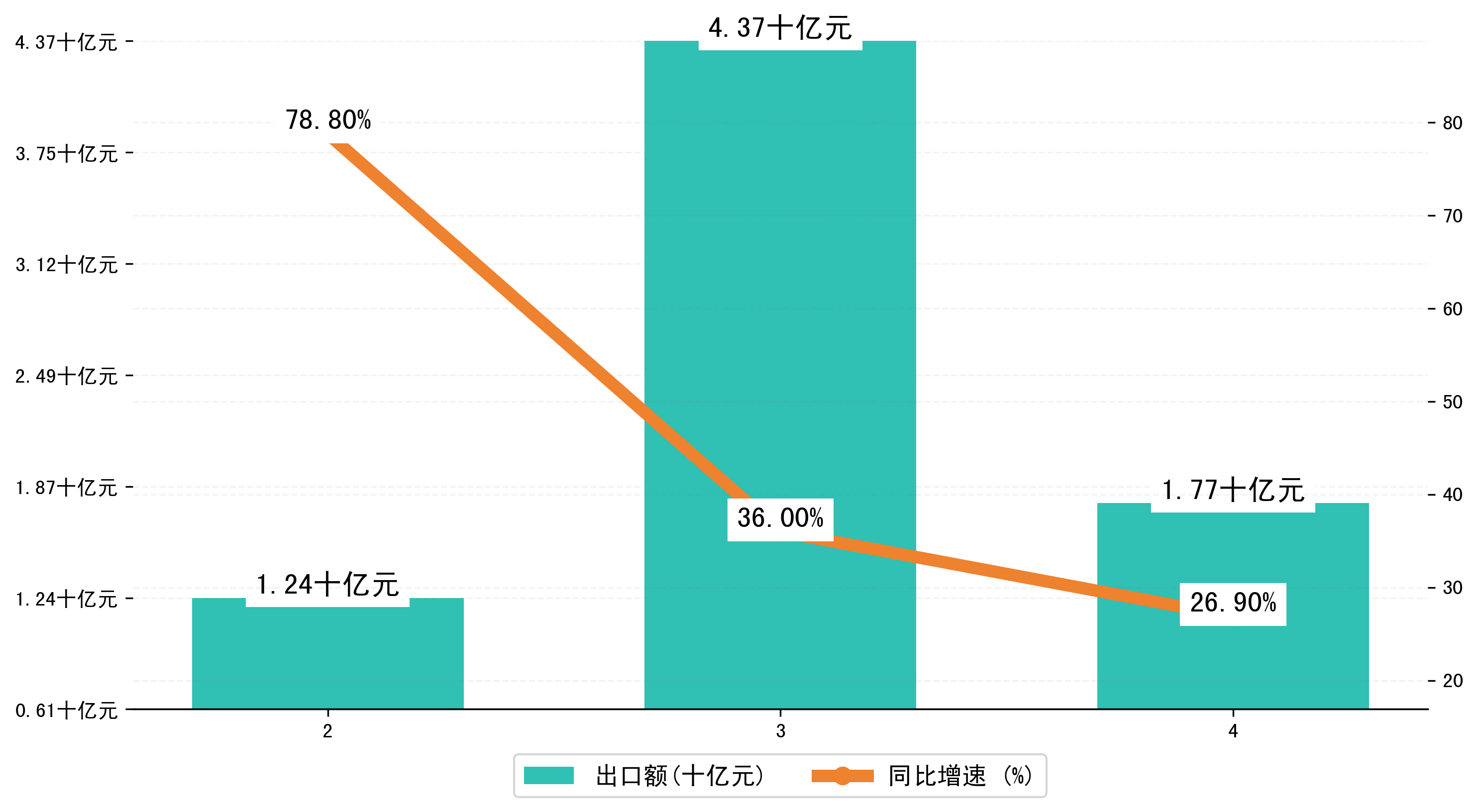 以美元计,2025年1-4月哈尔滨市贸易差额为4,5772,4088万美元(贸易顺差),相比上年同期增加了4,4881,6091万美元,同比增加5038.35%。