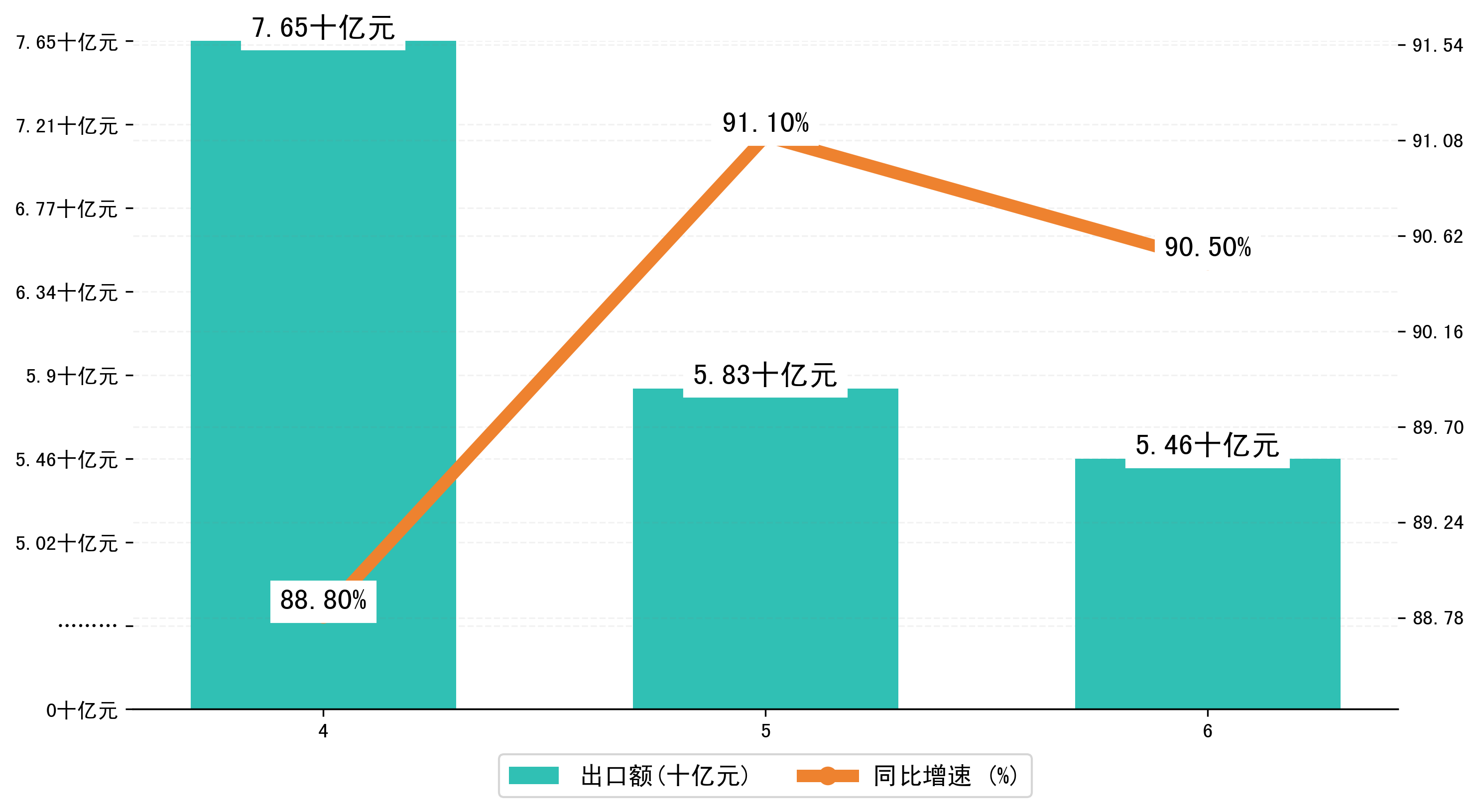 以人民币计,2023年6月保定市出口额为54,6064.2469万元,相比上月减少了3,6799.4549万元;相比上年同期增加了25,4398.5736万元,同比增加了90.50%。