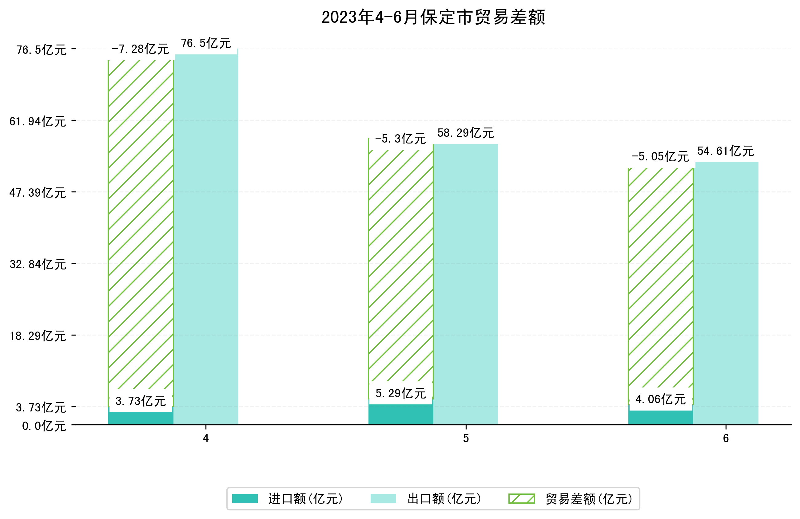 一、2023年6月保定市单月出口总额及进出口差额统计分析
