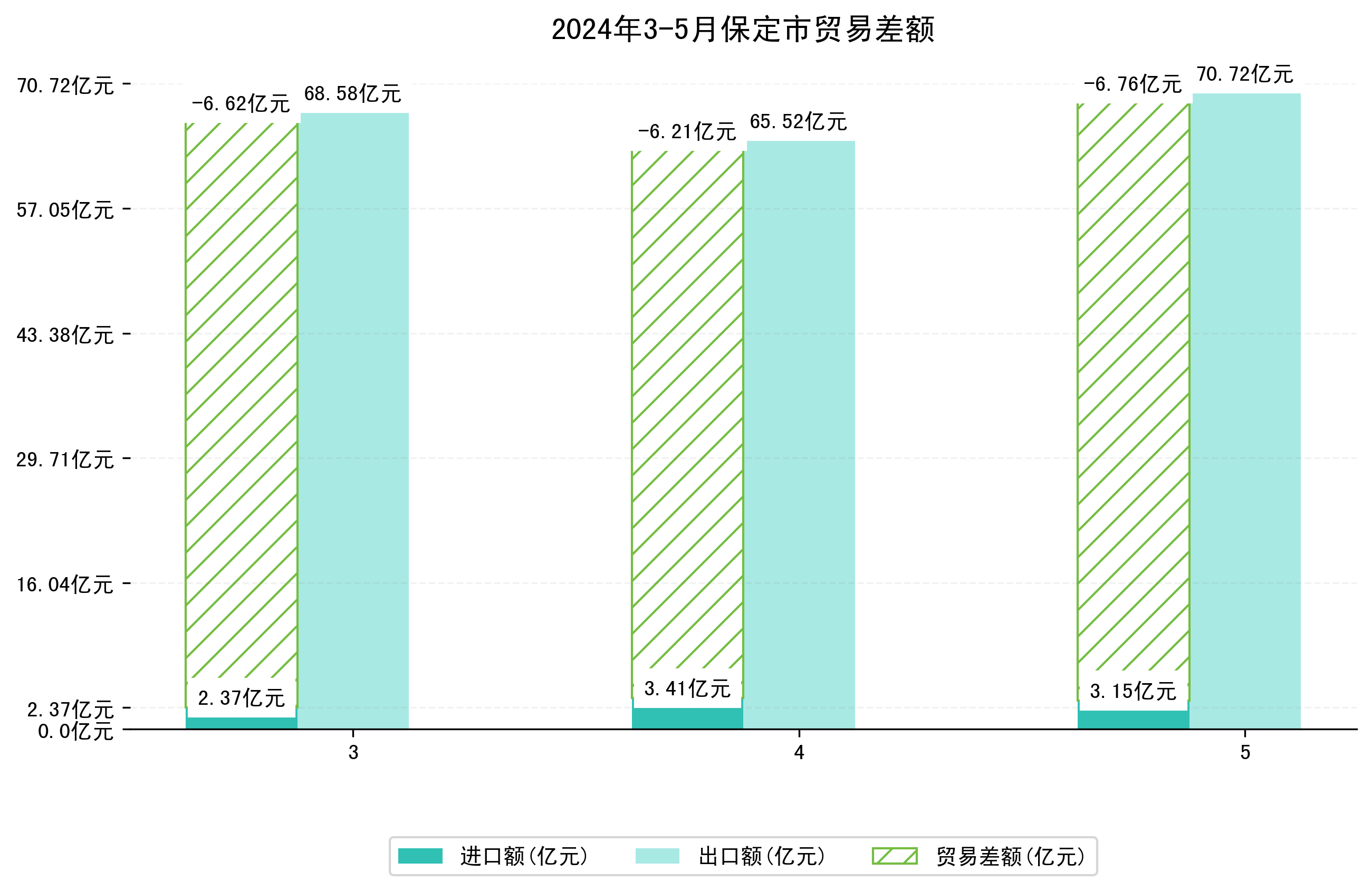 一、2024年5月保定市单月出口总额及进出口差额统计分析