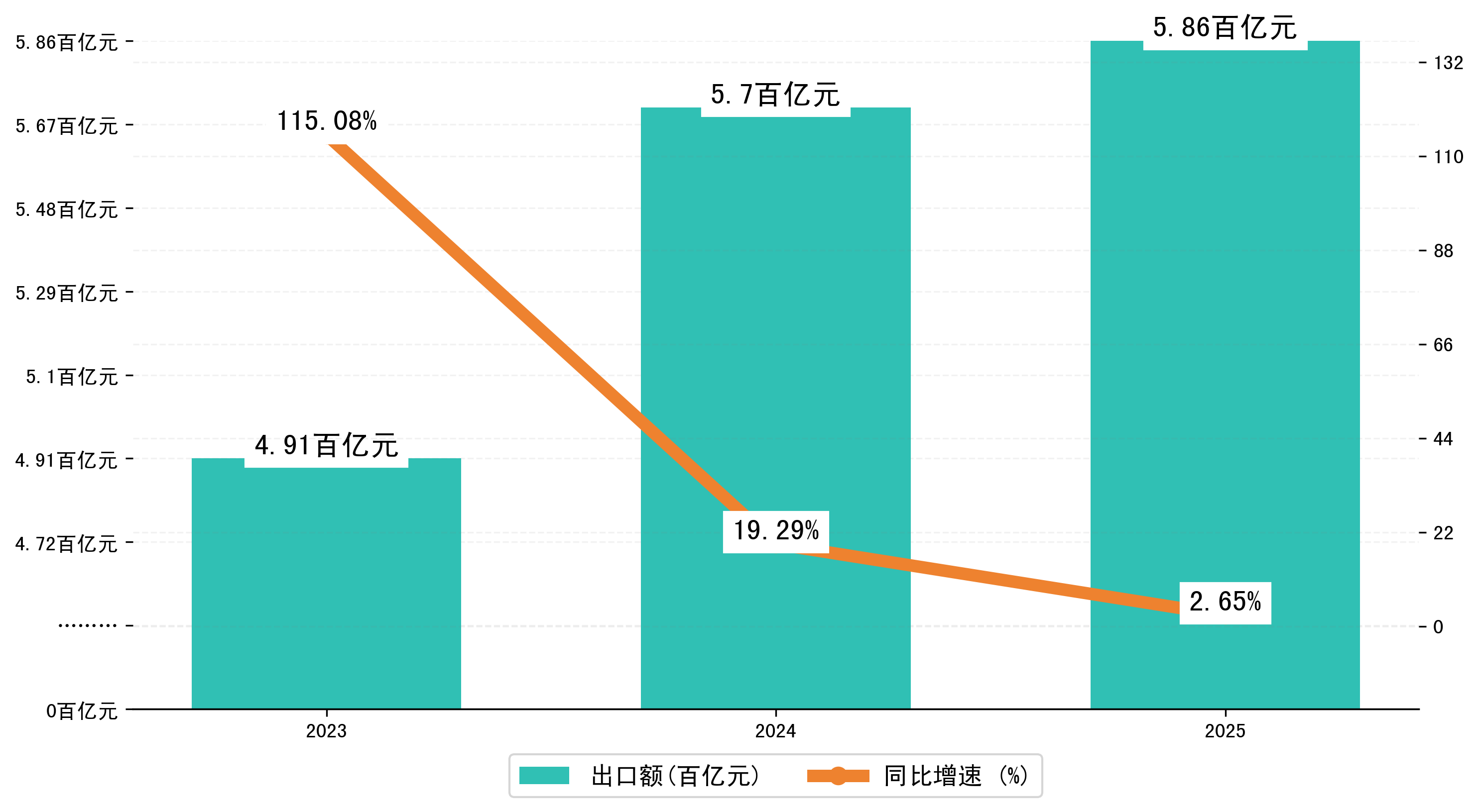以人民币计,2025年1-9月保定市出口额为585,6023.2799万元,相比上年同期增加了15,1213.6451万元,同比增加了2.70%。