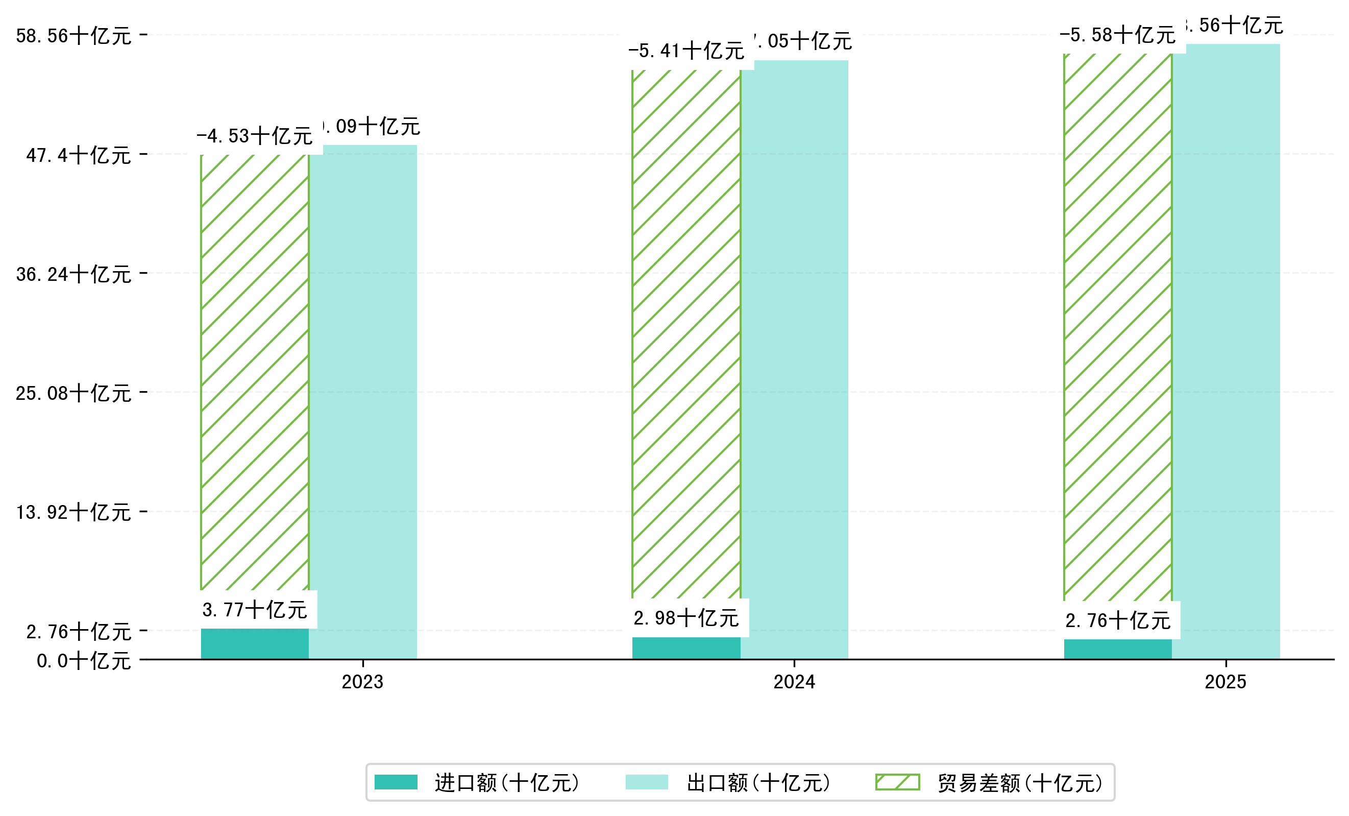 以美元计,2025年1-9月保定市贸易差额为77,7761,8197万美元(贸易顺差),相比上年同期增加了1,7330,4527万美元,同比增加2.28%。