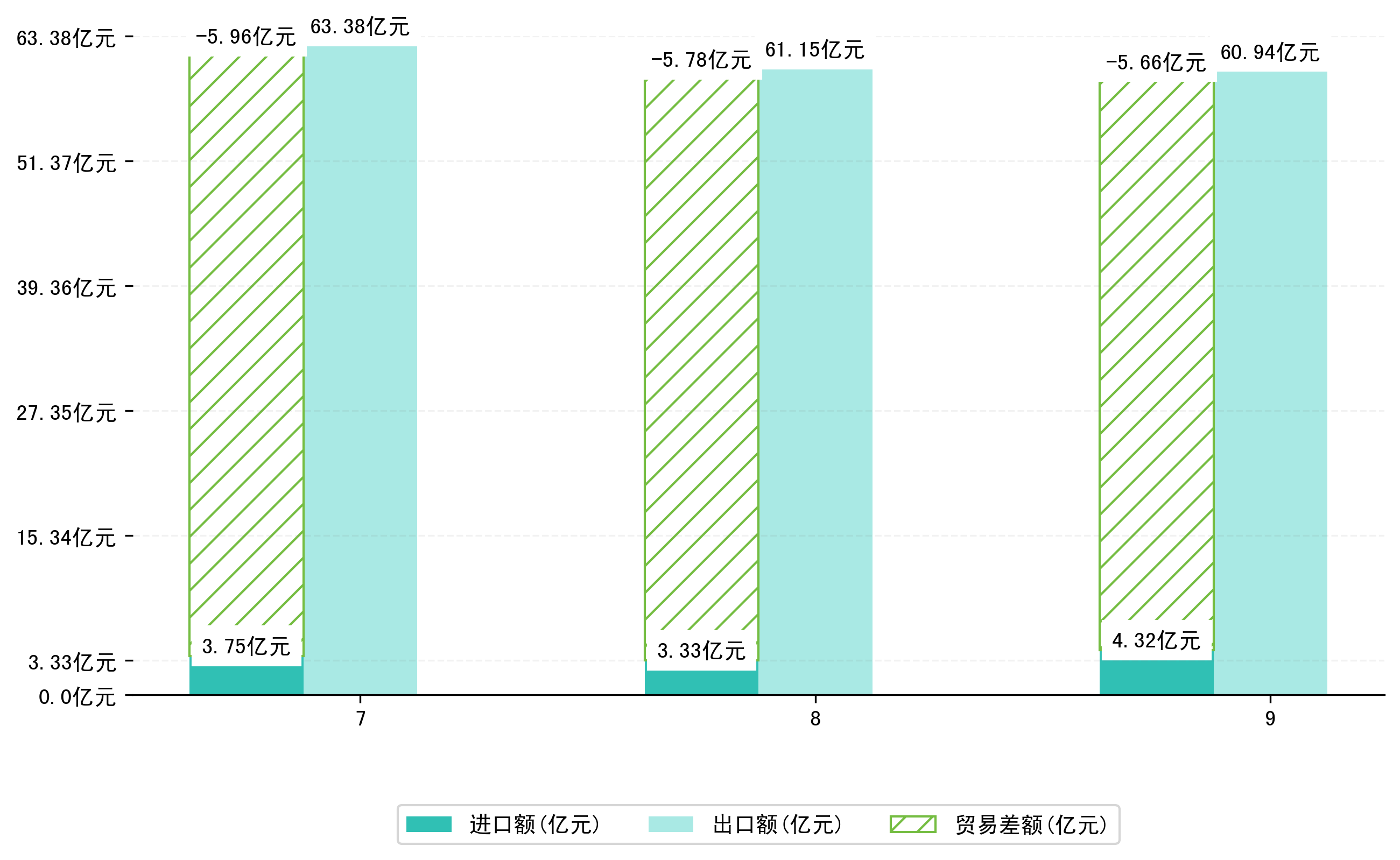 以人民币计,2025年9月保定市贸易差额为56,6194,2295万元(贸易顺差),相比上月减少了1,2025,8500万元,即1314,1251万美元;相比上年同期减少了3,6698,4685万元,同比减少-6.09%。