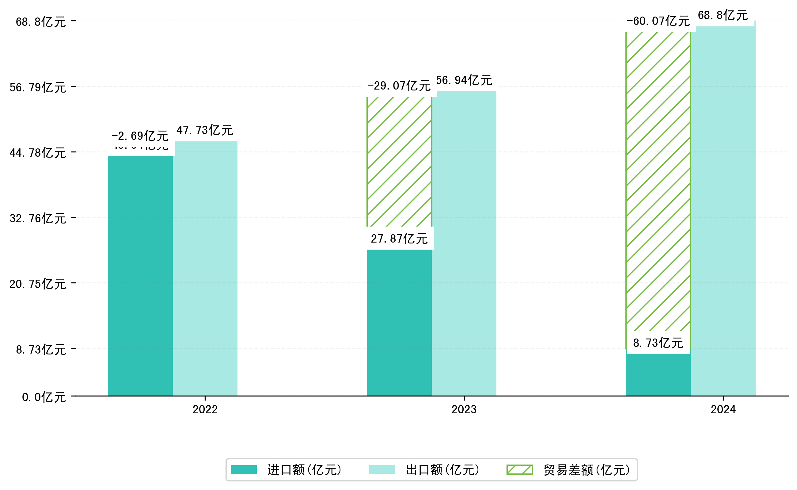 以美元计,2024年1-10月宝鸡市贸易差额为8,4511,3664万美元(贸易顺差),相比上年同期增加了4,2932,0021万美元,同比增加103.25%。
