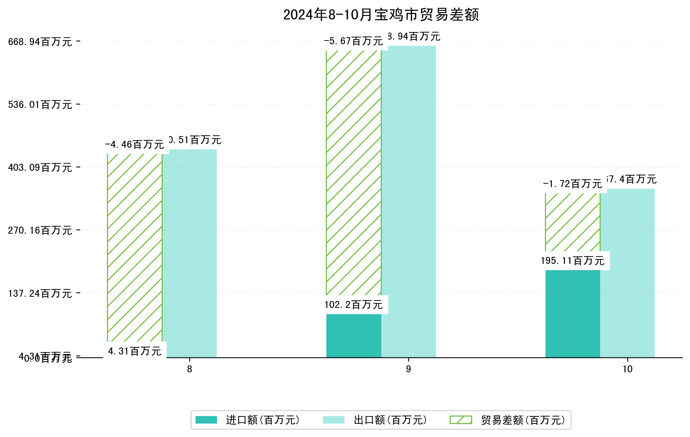 2024年10月宝鸡市进出口总额及进出口差额统计分析