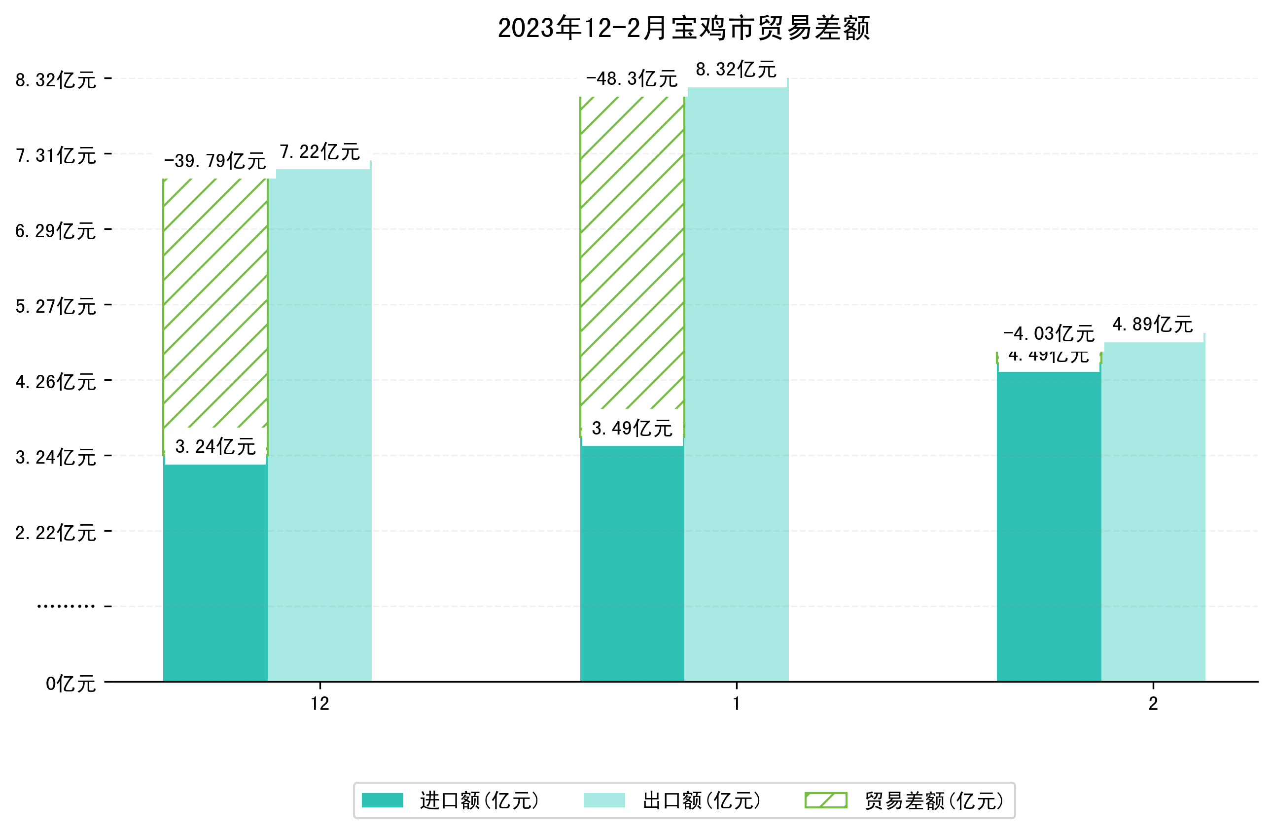 (图四:2023年12-2月宝鸡市贸易差额)